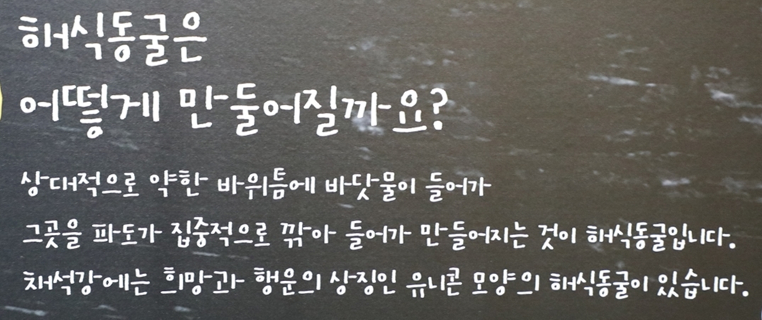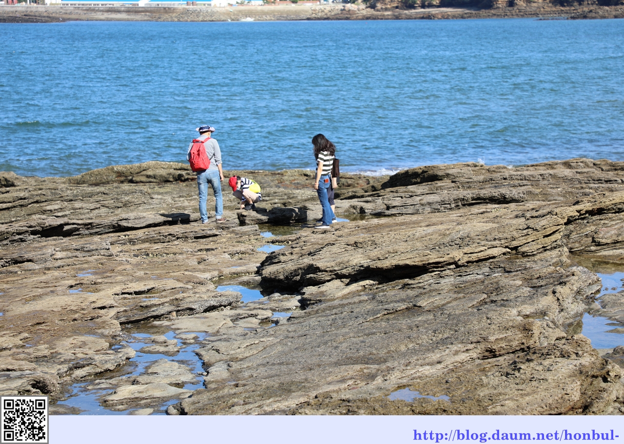 간조 때는 물 빠진 퇴적암층에 다닥다닥 붙어있는 바다생물과 해식동굴의 신비로운 모습을 볼 수 있다.