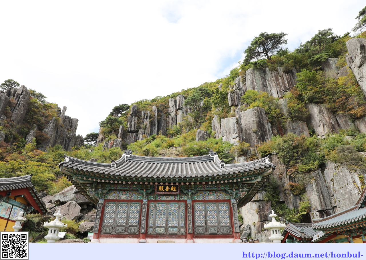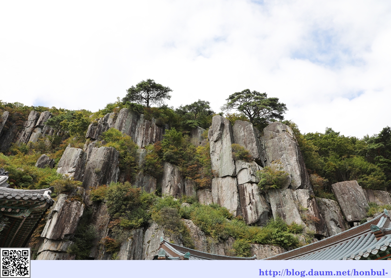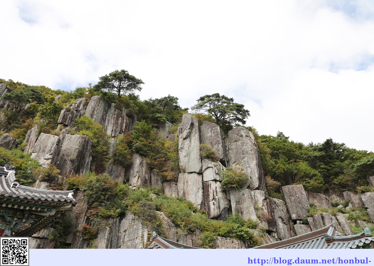 길가 바위에서 보는 입석대 뒷모습