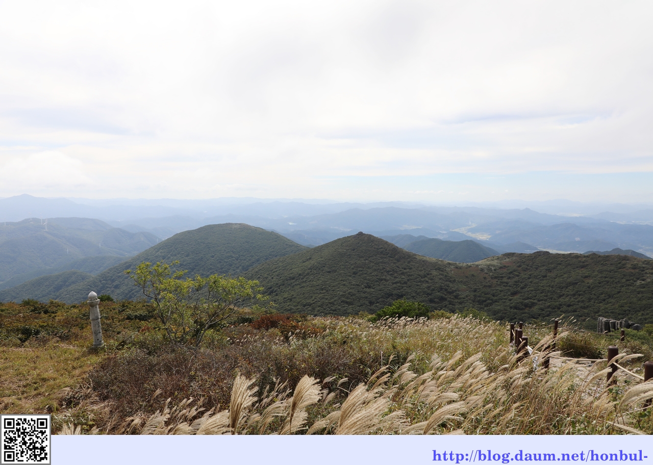 해발 800~900m 사이의 2.5km의 대규모 능선으로 백마의 잔등 모양 지현 위 억새가