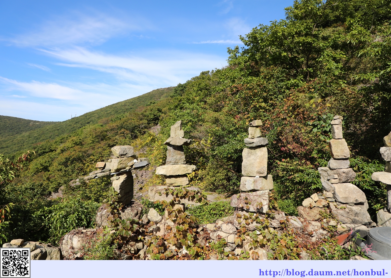 정상을 중심으로 산비탈에 있는 너덜경은 이러한 돌기둥이 무너져 쌓인 것이다.