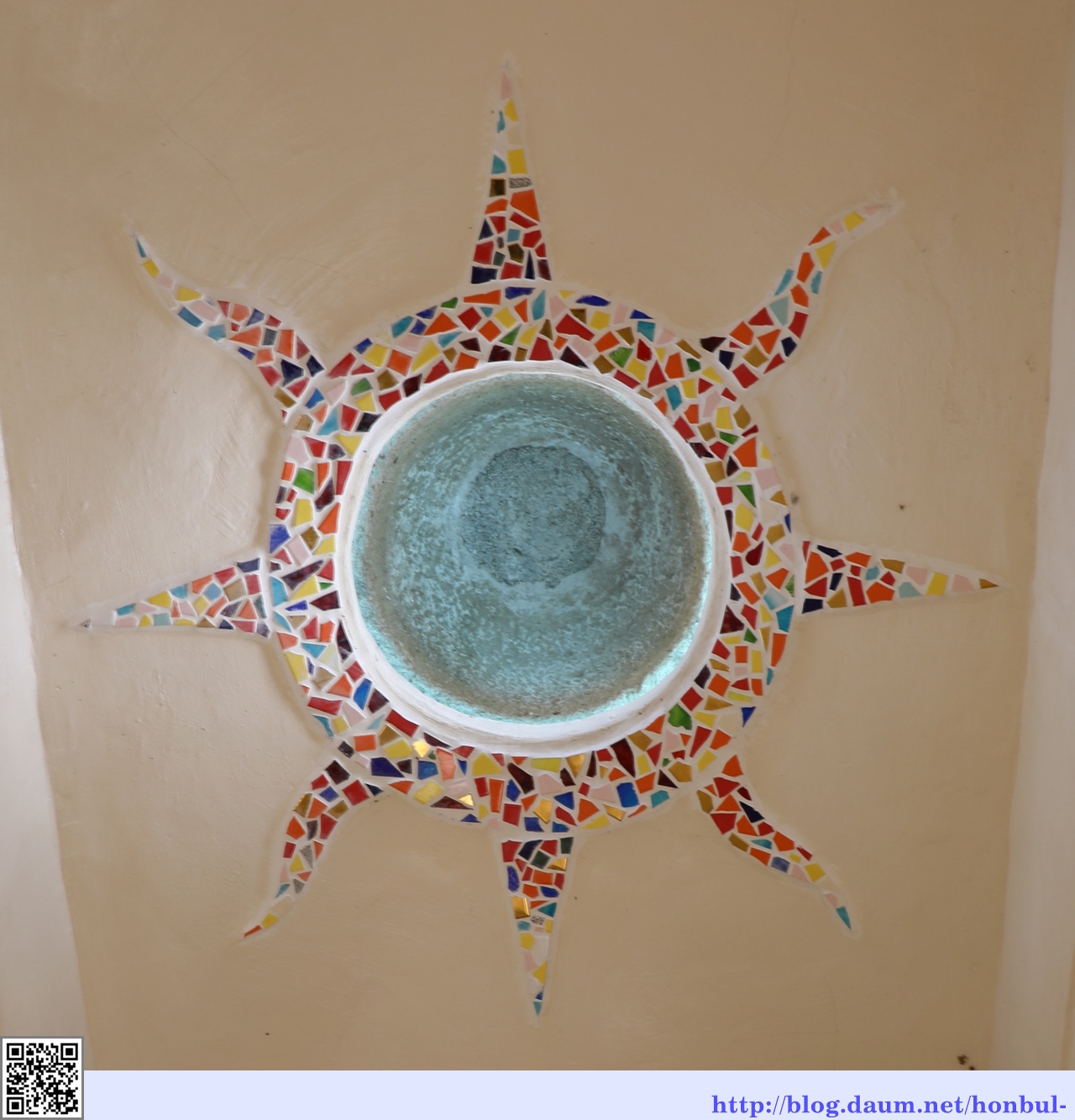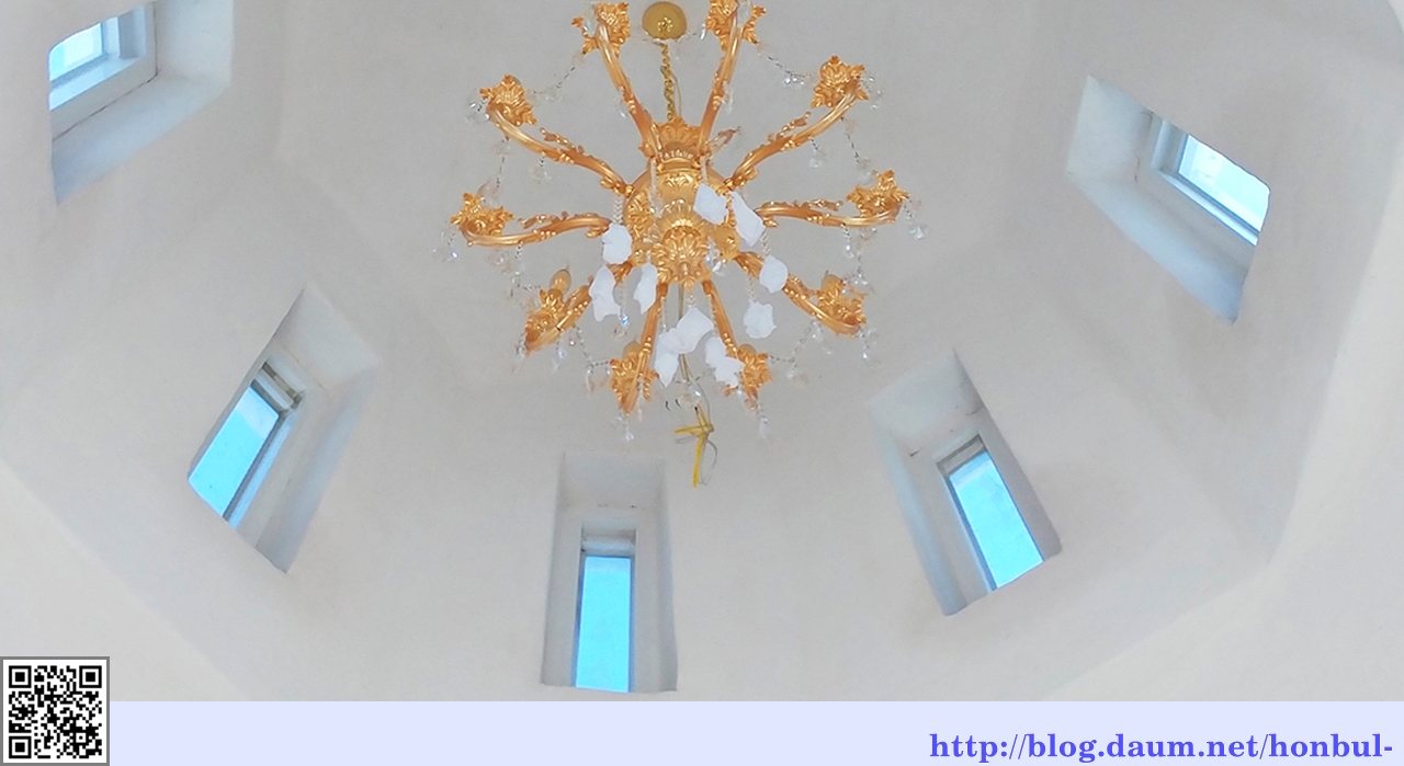 천장에 있는 모자이크로 가운데에 십자가를 살짝 집어넣고, 나머지엔 뭘 넣은 걸까?