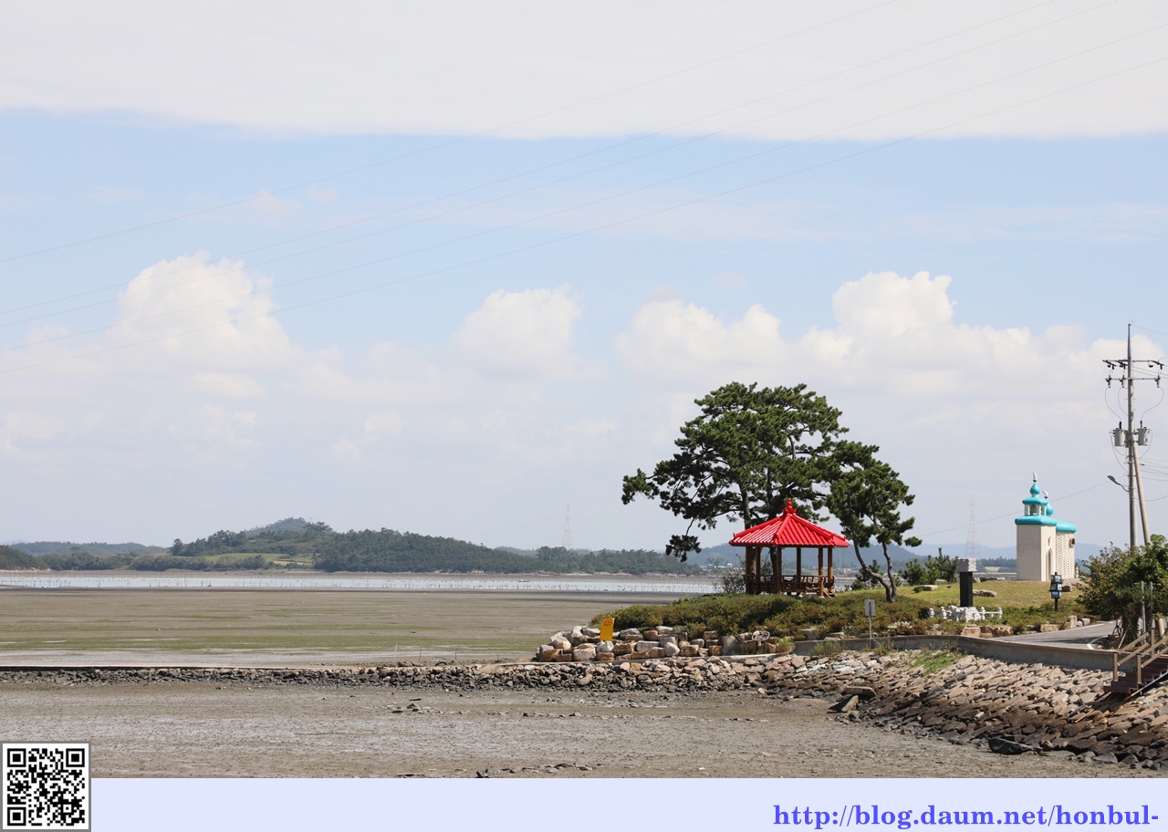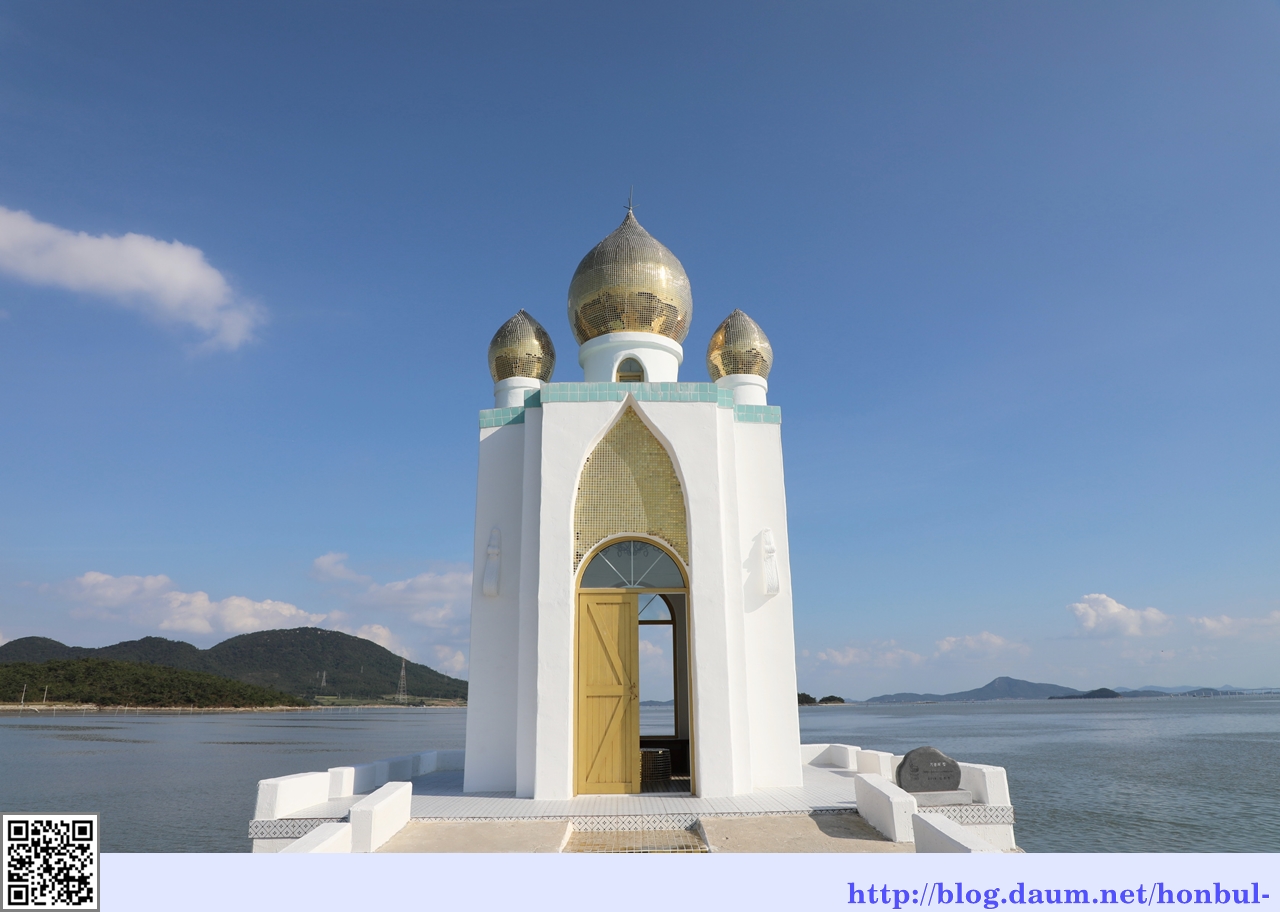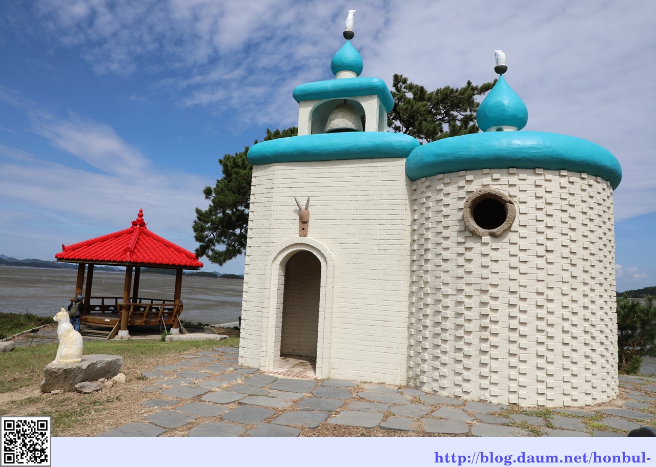 가이드 : 지역의 상징적 자연물인 갯벌 위에 세운 건축 미술 작품으로, 러시아 정교회를 닮은 양파 지붕이 아름답다.