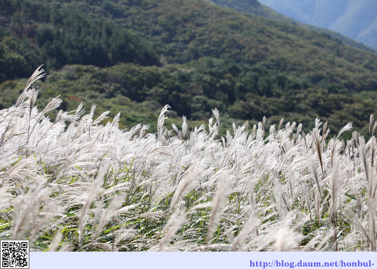 푸른 물이 뚝뚝 흘러내릴 듯한 가을 하늘과, 밥물 끓어 넘치듯 피어난 억새꽃은 보는 이의 숨을 멎게 할 정도다.