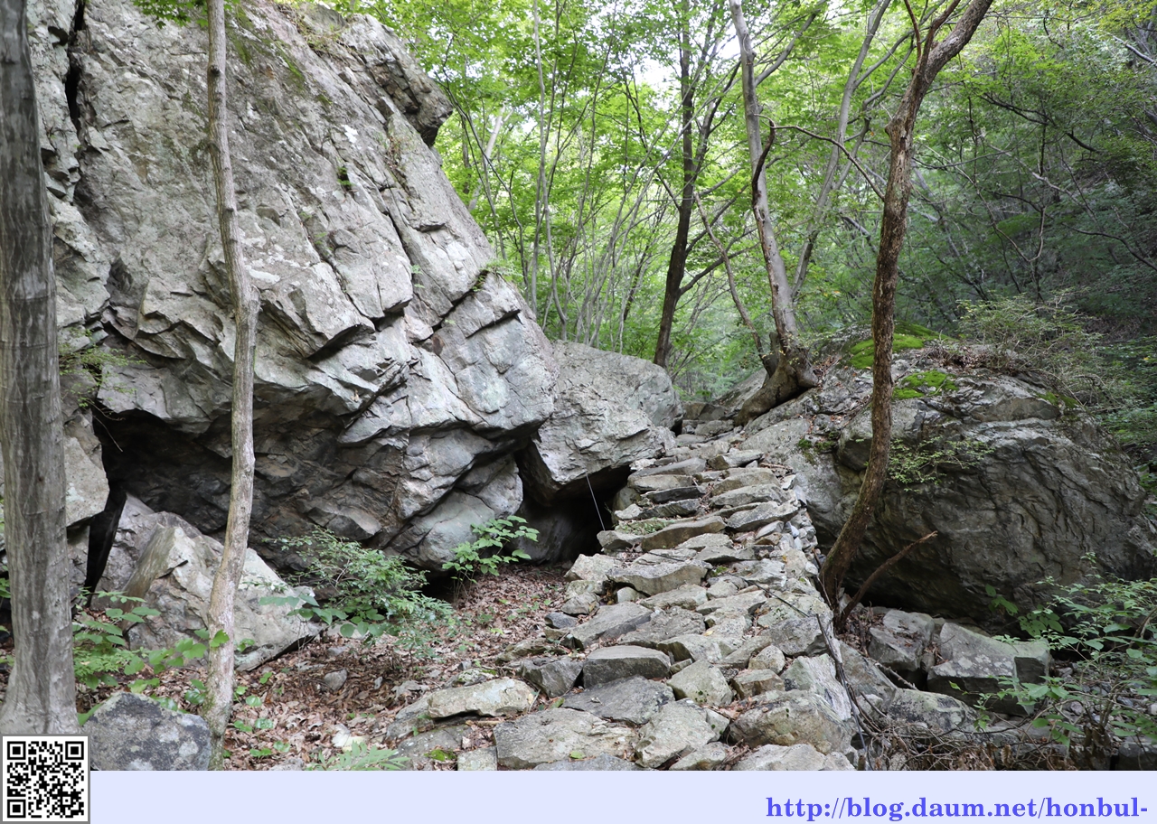 너덜겅으로 이동통로가 지나간다.