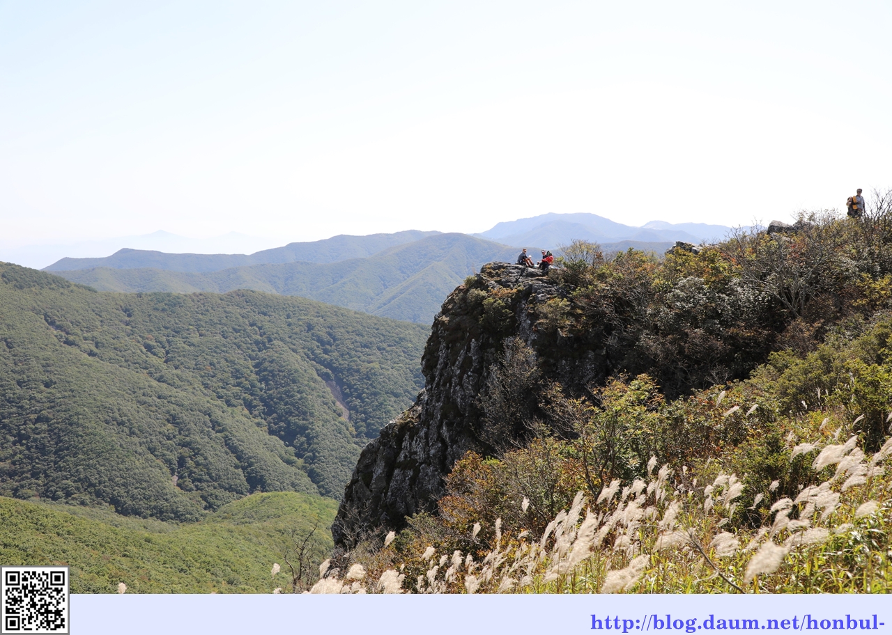 오름이 끝난 능선에서 암봉에 선 여성은 운문산에서 서로 사진을 찍어 주던 일행 중 두 명이다.
