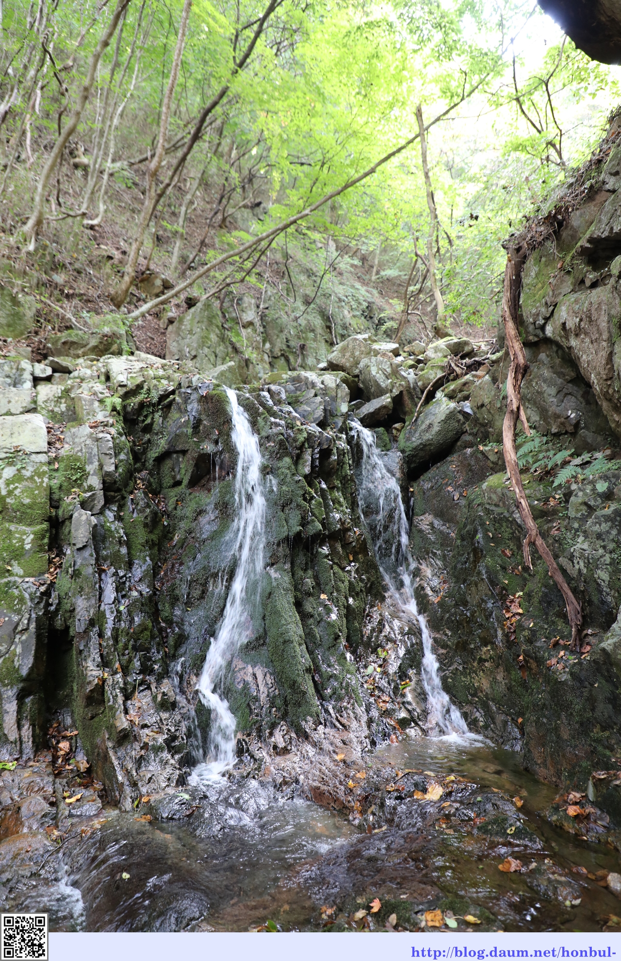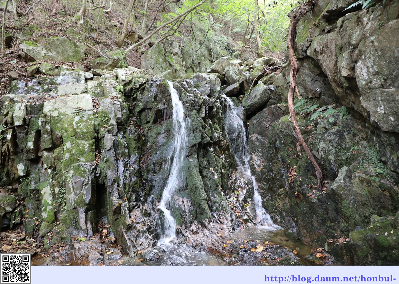 그동안 수많은 사람이 낸 길을 따라 내려가다 만나는 작은 폭포다.