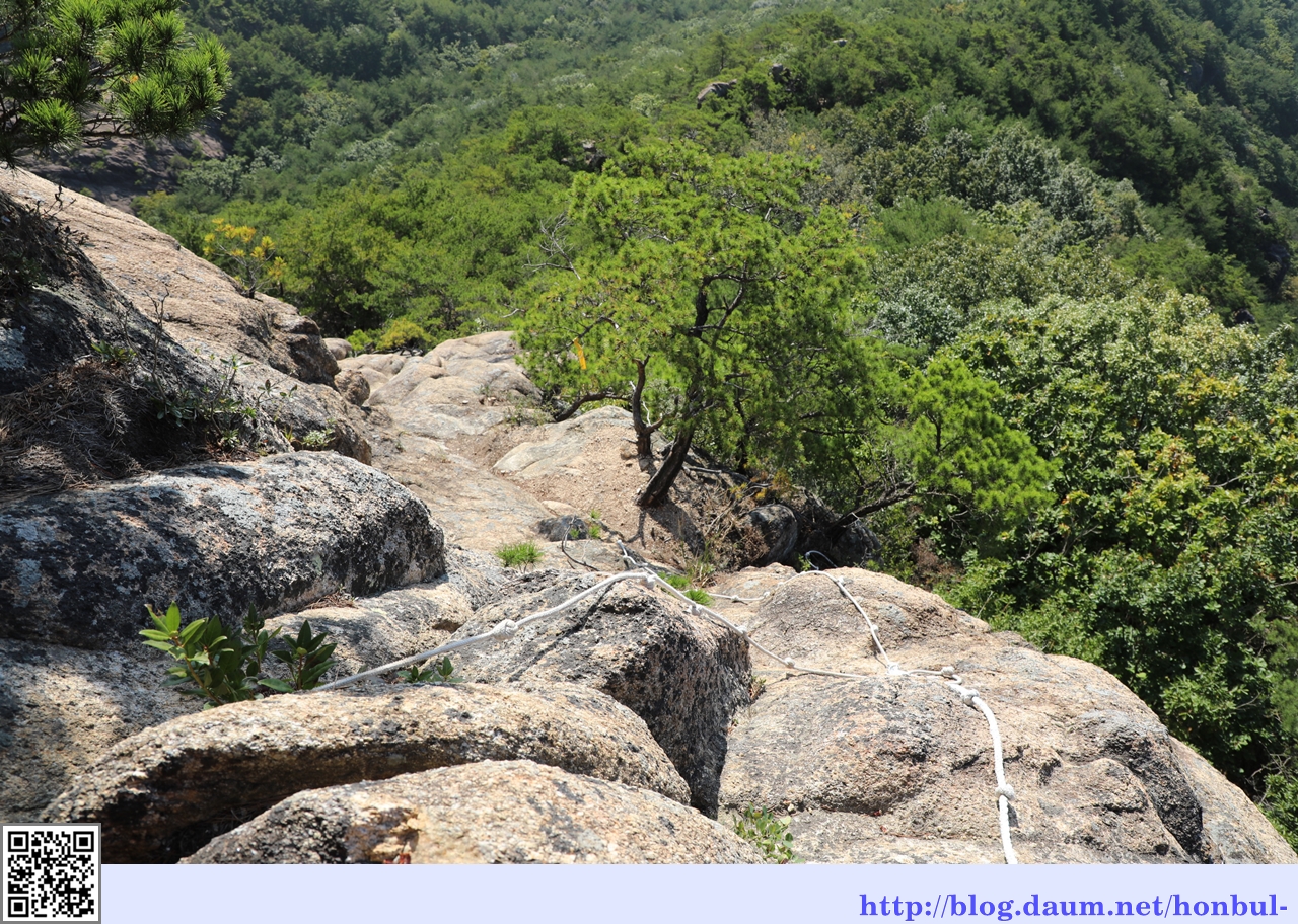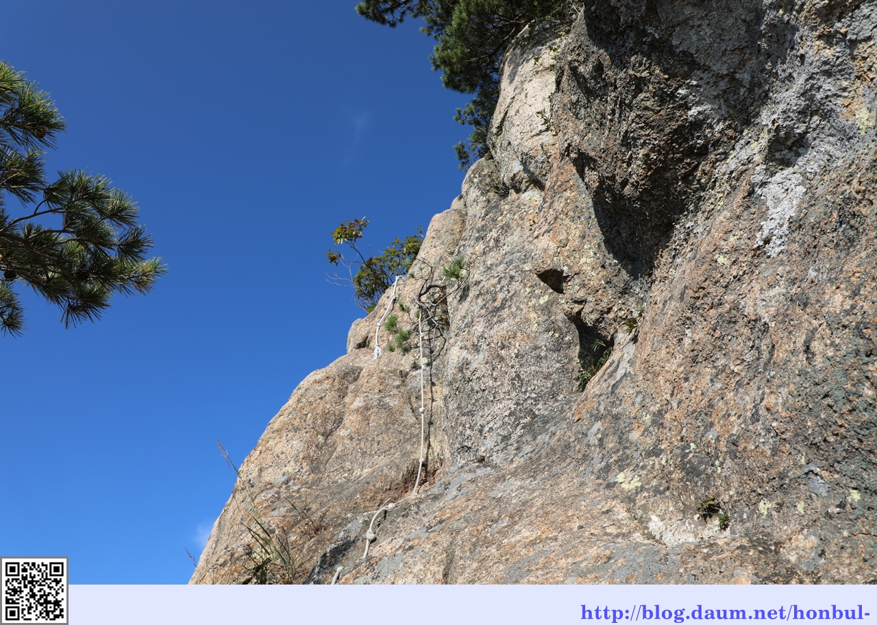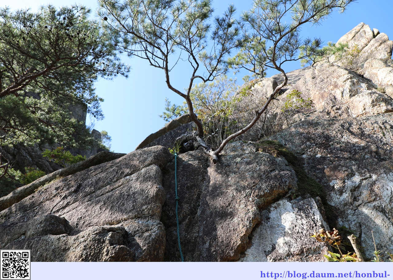 수리봉을 내려온 바위로 왼쪽에서 두 번째 수직 바위틈으로 내려왔다.