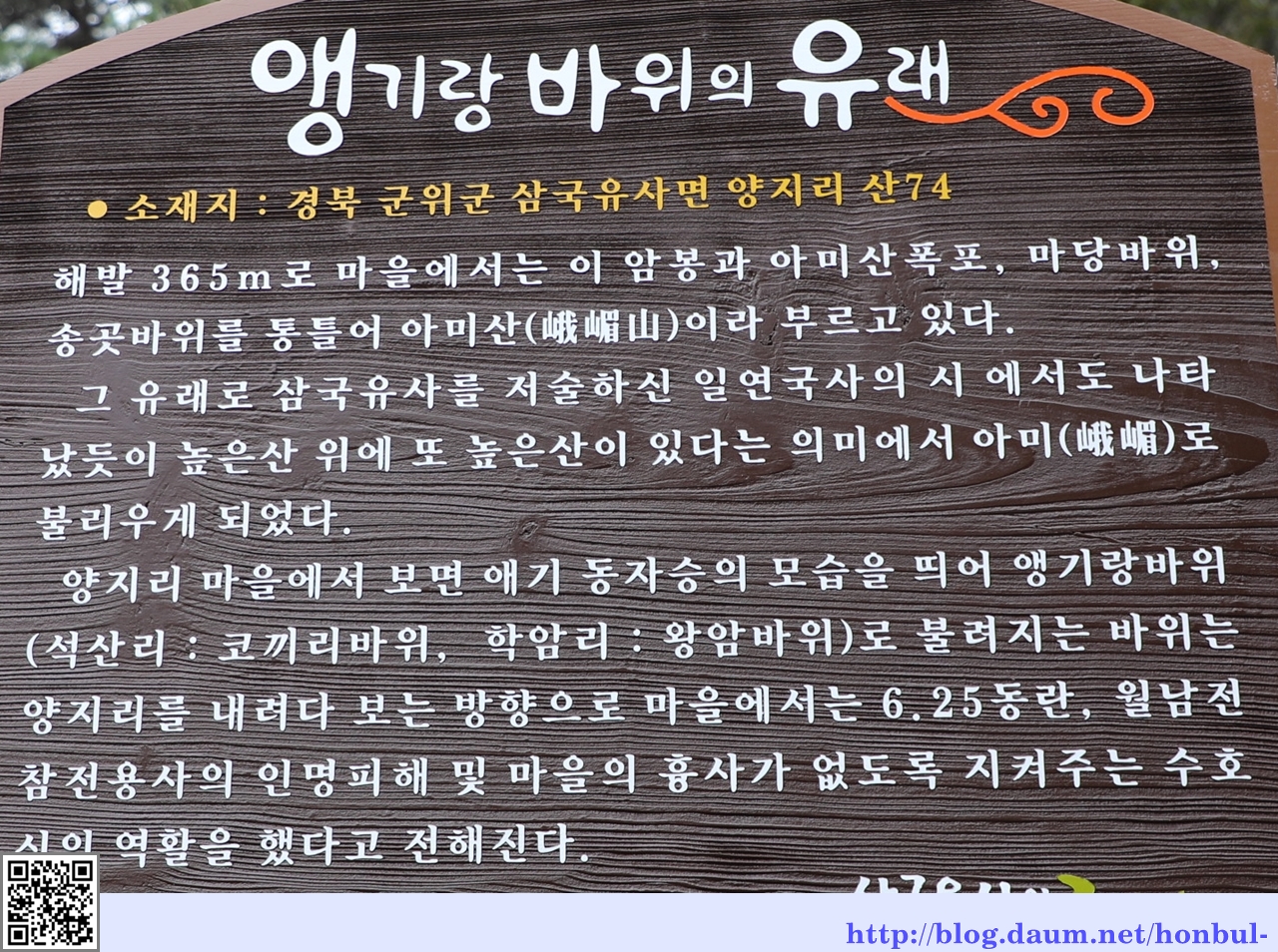 이 바위가 앵기랑바위인데, 뒷모습이다.