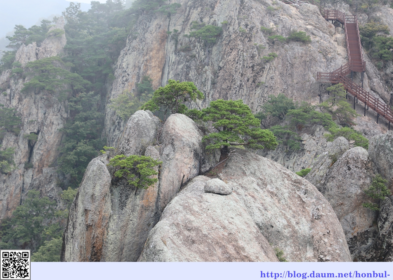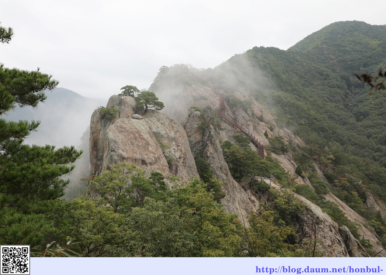 단풍이 들지 않아도, 날씨가 좋이 않아도, 안개가 휘감은 봉우리가 선계를 보는 듯하다.