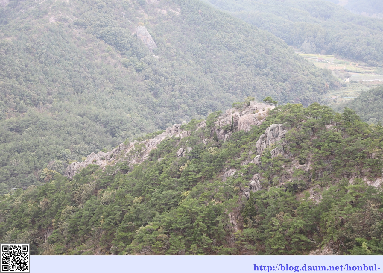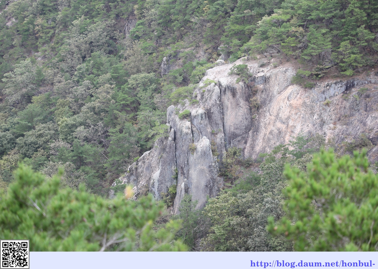 하여 하산길은 암릉 구간을 조망할 수 있는 건너편 능선으로 길을 잡는다.