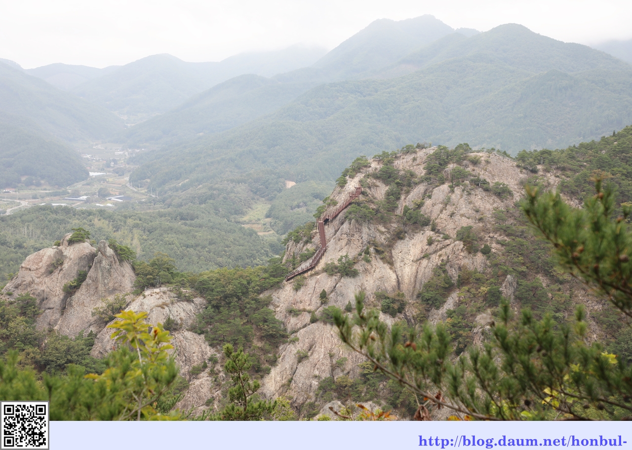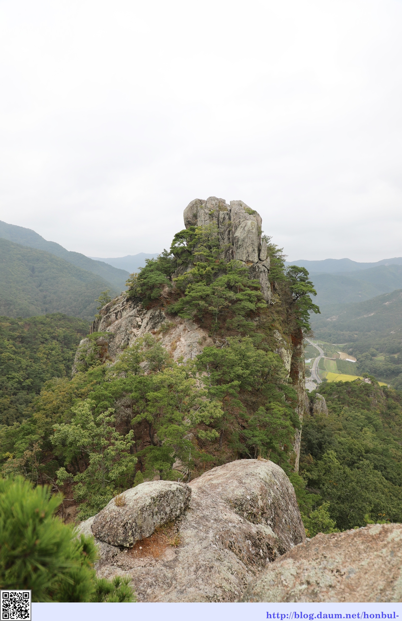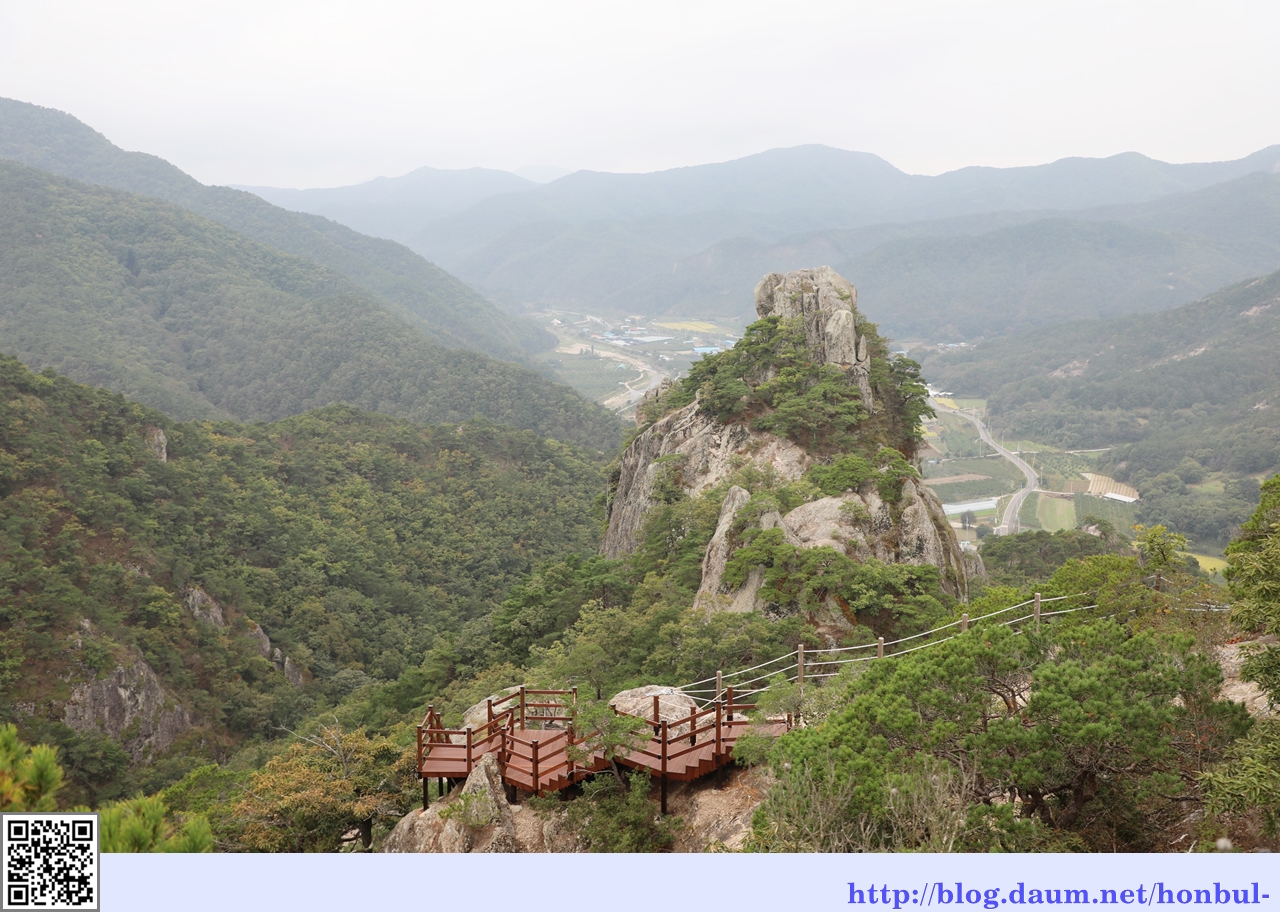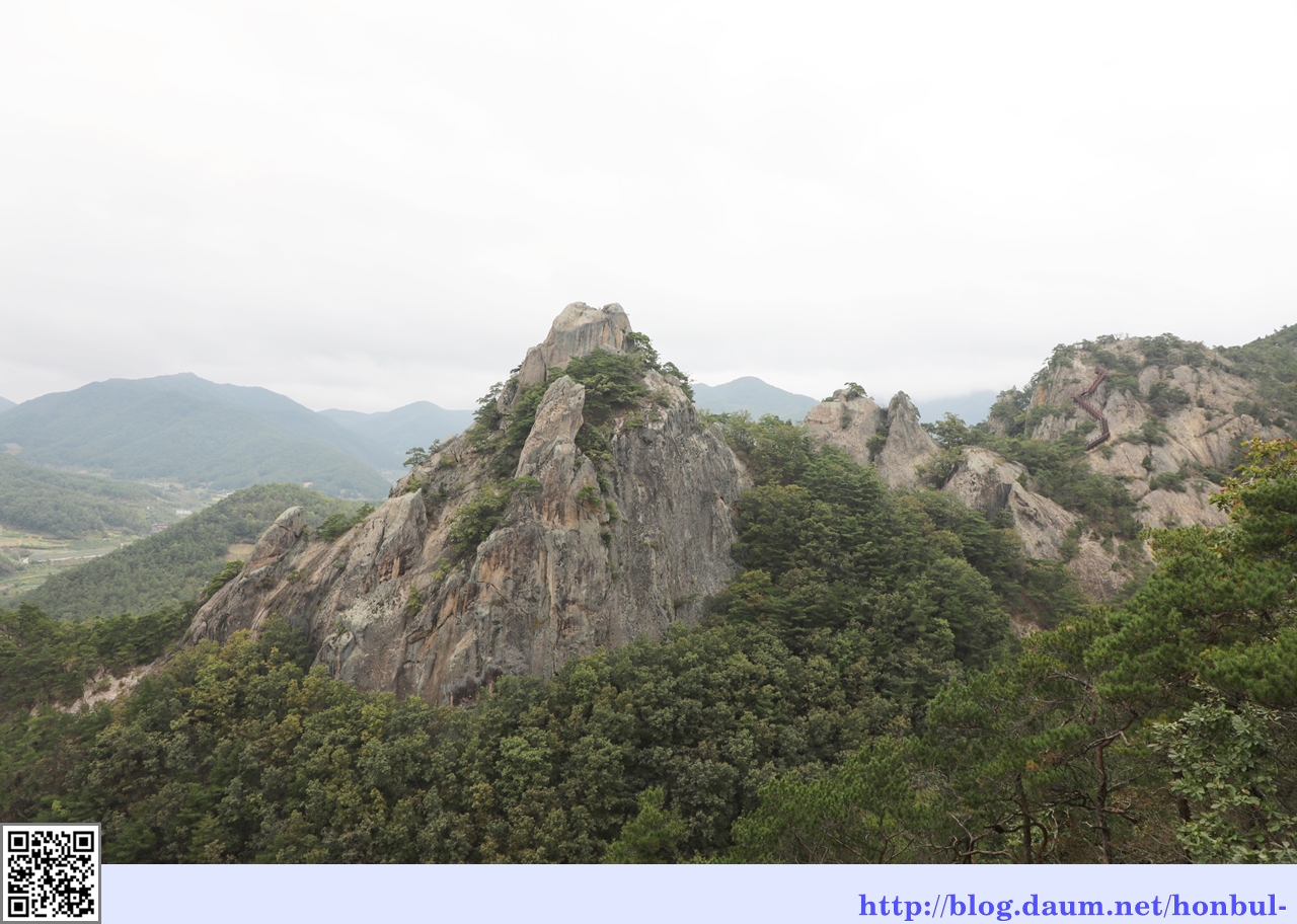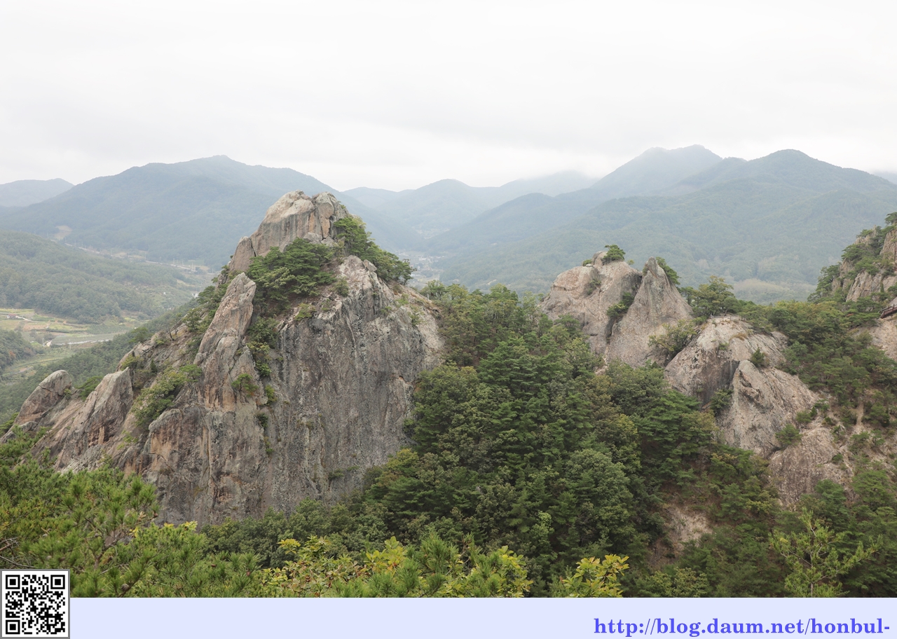 등산할 때 보던 앵기랑바위가 첨봉처럼 보였는 데, 이곳에선 육중한 바위산으로 보인다.