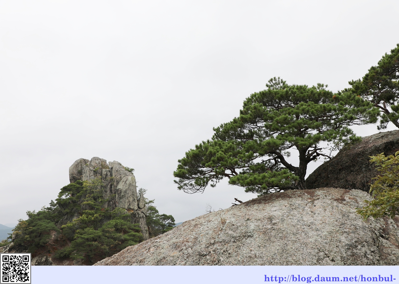 바위틈 사이에서 자라 짧게 뻗은 소나무 가지들은 분재 같은 모양으로 아름다움을 더 해준다.