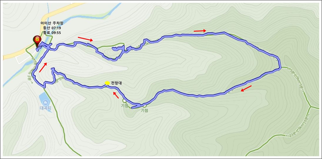 2021.10.8 (금) 07:19~09:55, 2시간 35분 산행, 휴식 없음, 4.1km 이동, 평속 1.7km/h, 잔뜩 흐림