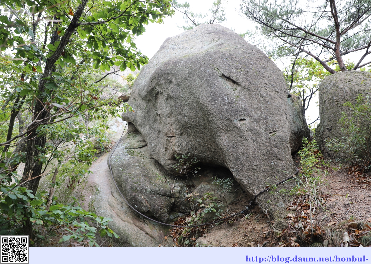 부처바위에서 10분 정도 올라가면 커다란 바위가 앞을 가로막고 있다.