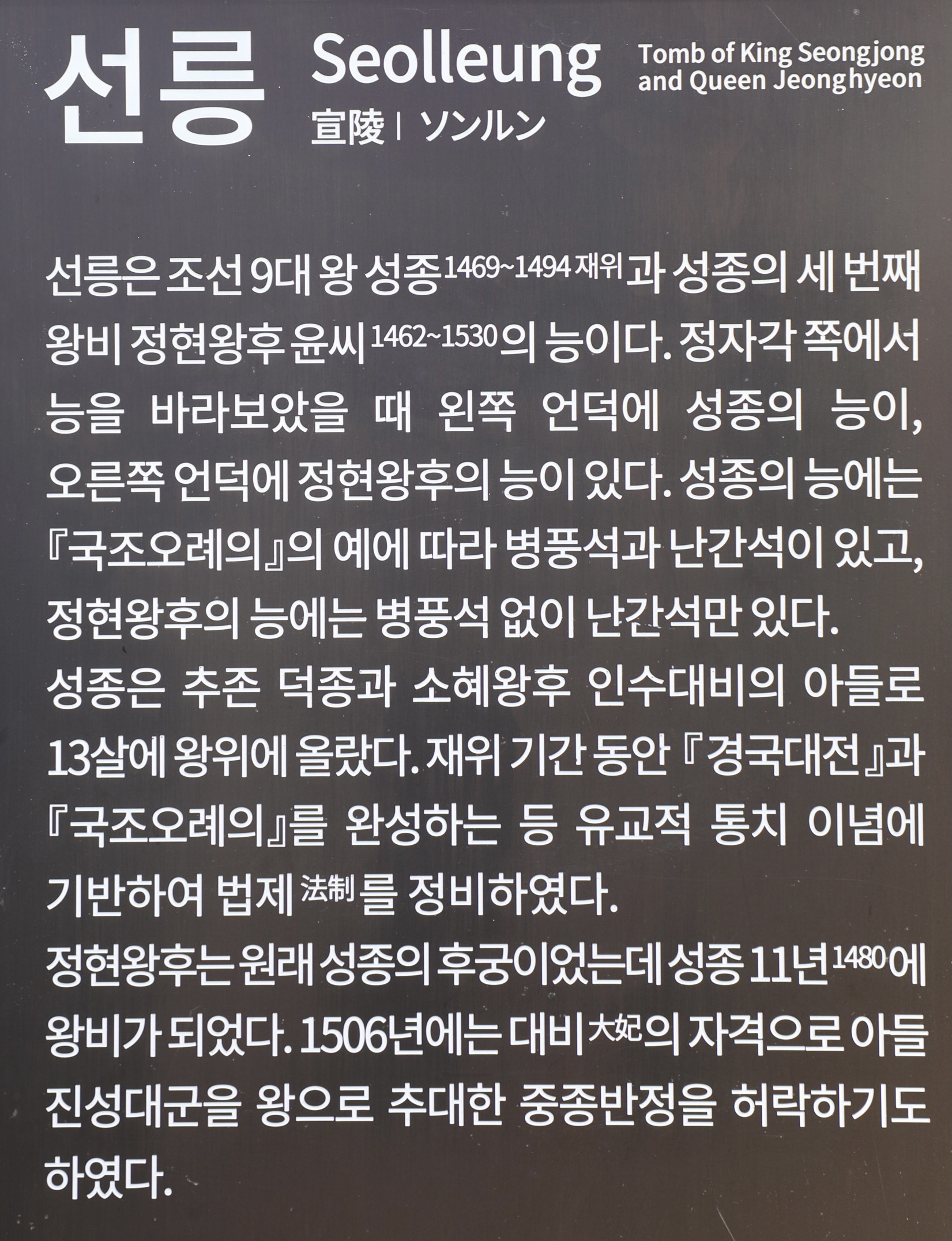 선릉은 9대 성종과 부인 정현왕후의 무덤이다.