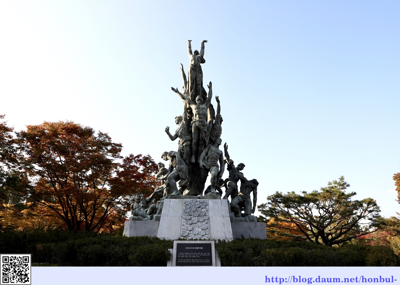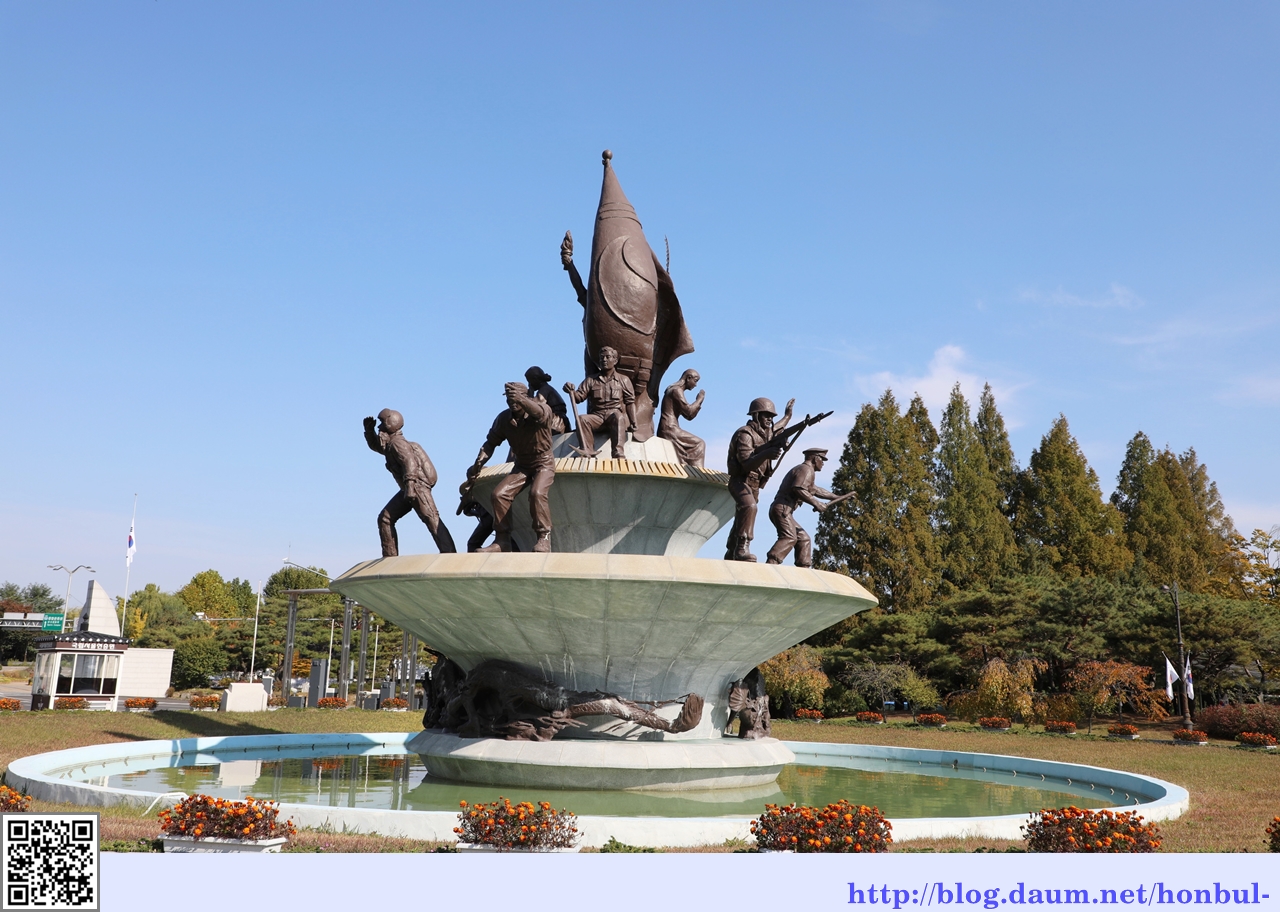 하단의 육·해·공군·해병대·예비군 등 6인의 동상은 국가와 국민의 수호를 위하여 충성을 바친