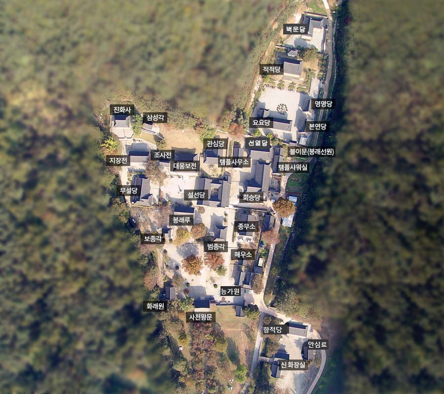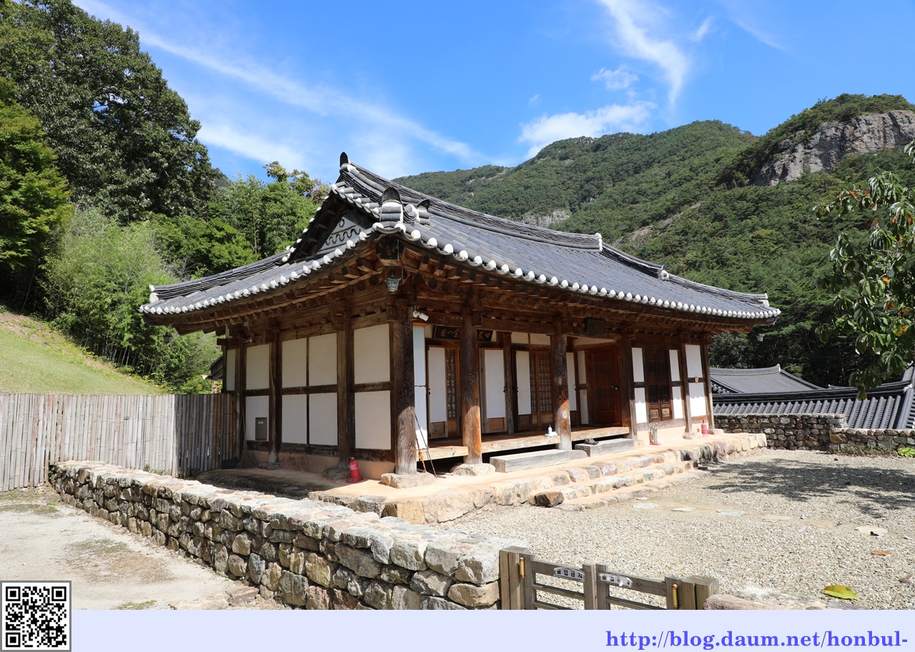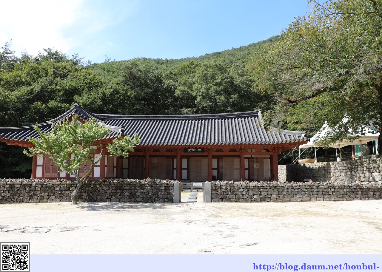 물의 지붕선이 뒤쪽에 보이는 산세와 조화를 이루는 이 건물은 1640년(인조 18)에