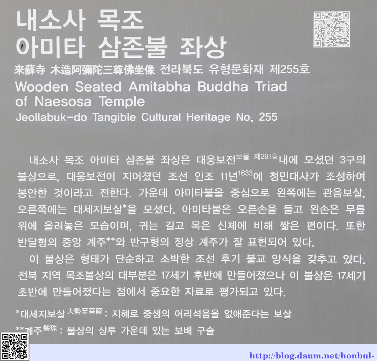 부안 내소사 대웅보전은 보물 제291호로 규모는 정면 3칸·측면 3칸으로,
