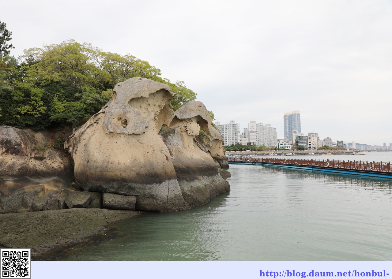 갓바위는 해안에서 바다를 바라보는 해식애의 일종으로 예전엔 배를 타야만 볼 수 있었다.