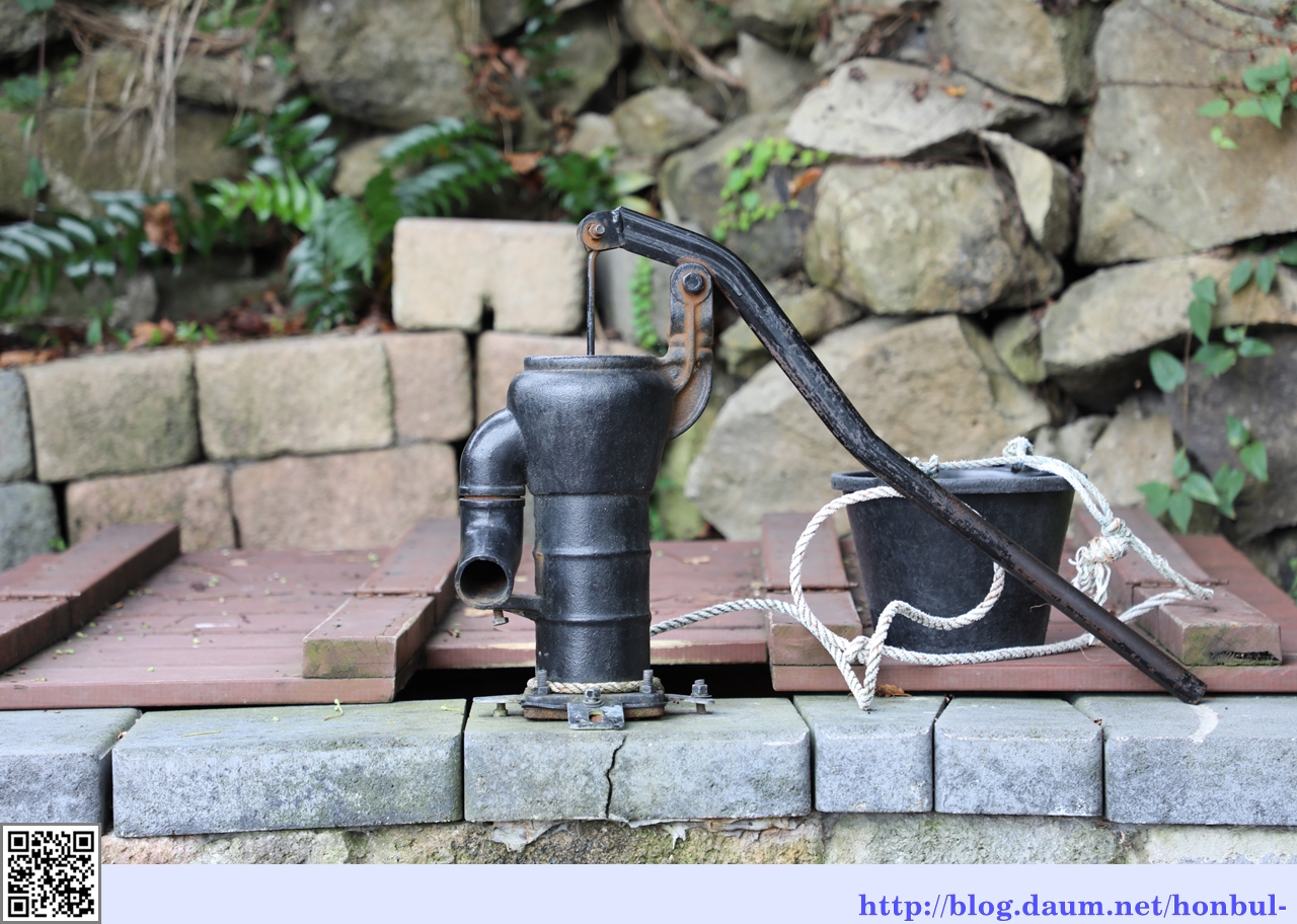 우물엔 두레박이 제격인데, 펌프를 설치한 센스라니....