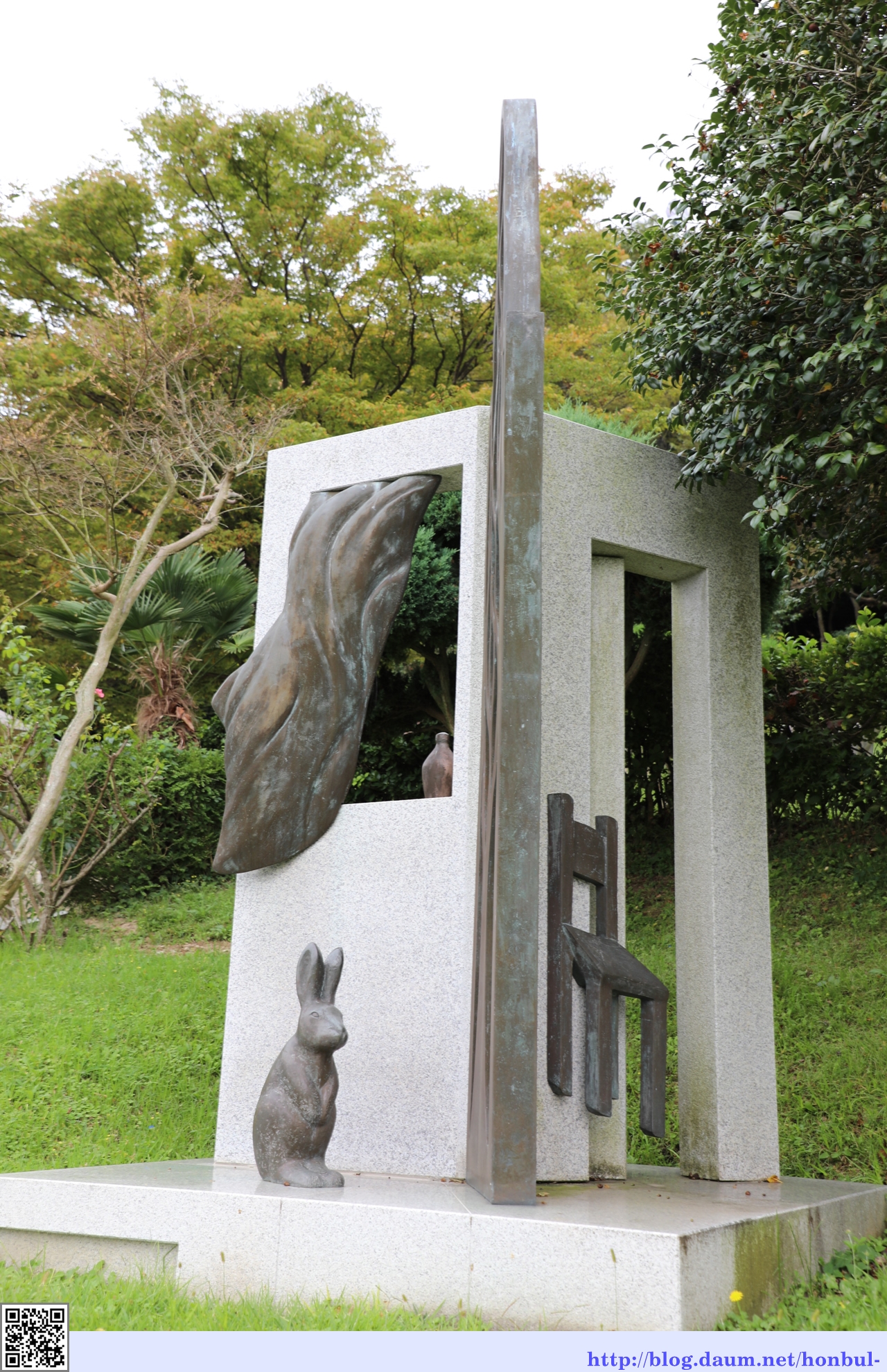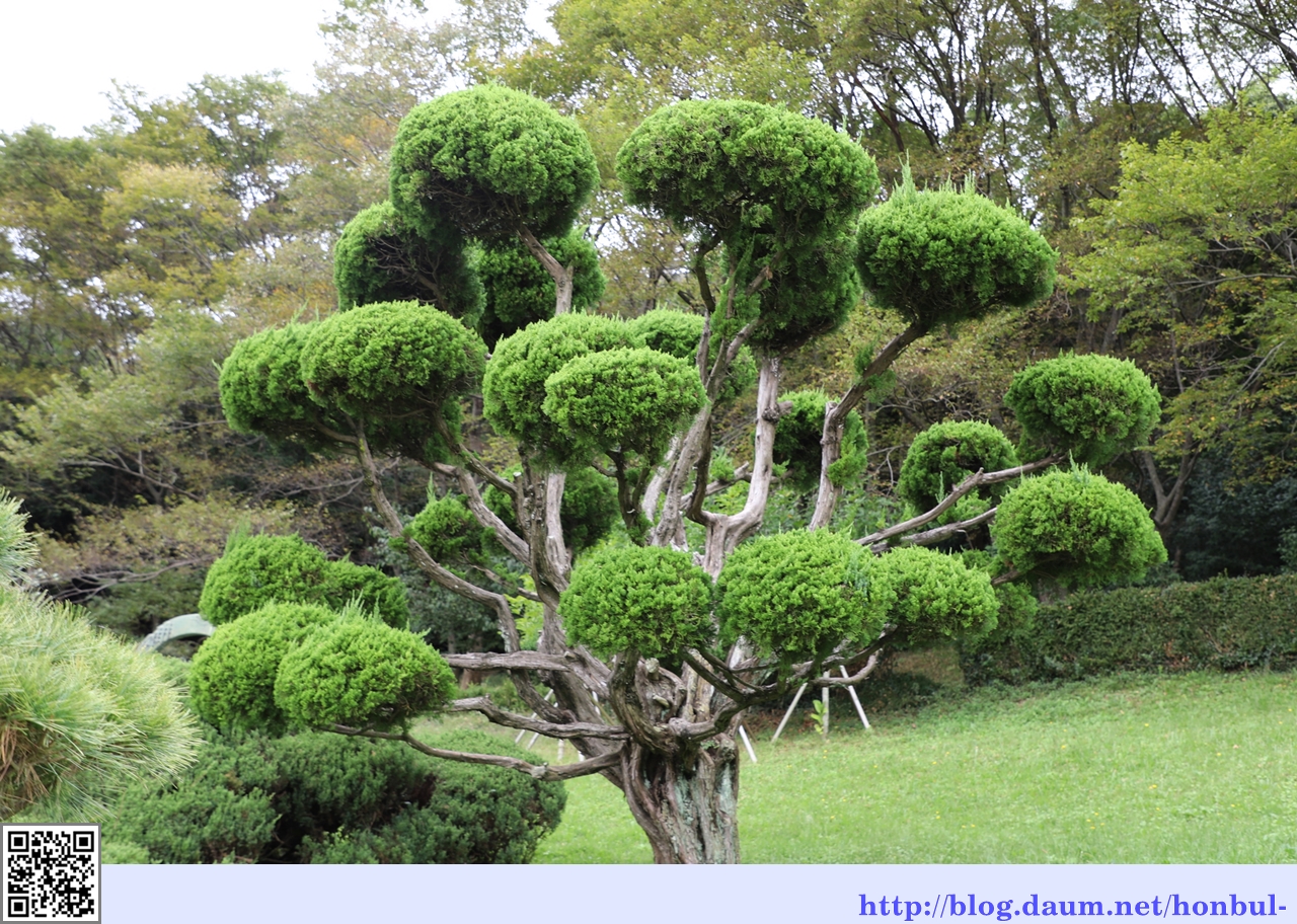 작은 연못 위에 설치된 이 작품은 흔히 볼 수 있는 서양에서 유래한 작품이다.