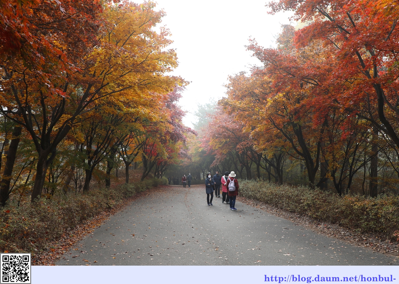 애써 등산하지 않고도 단풍을 즐길 수 있는 최상의 코스인데, 날씨가 따라주지 않는다.