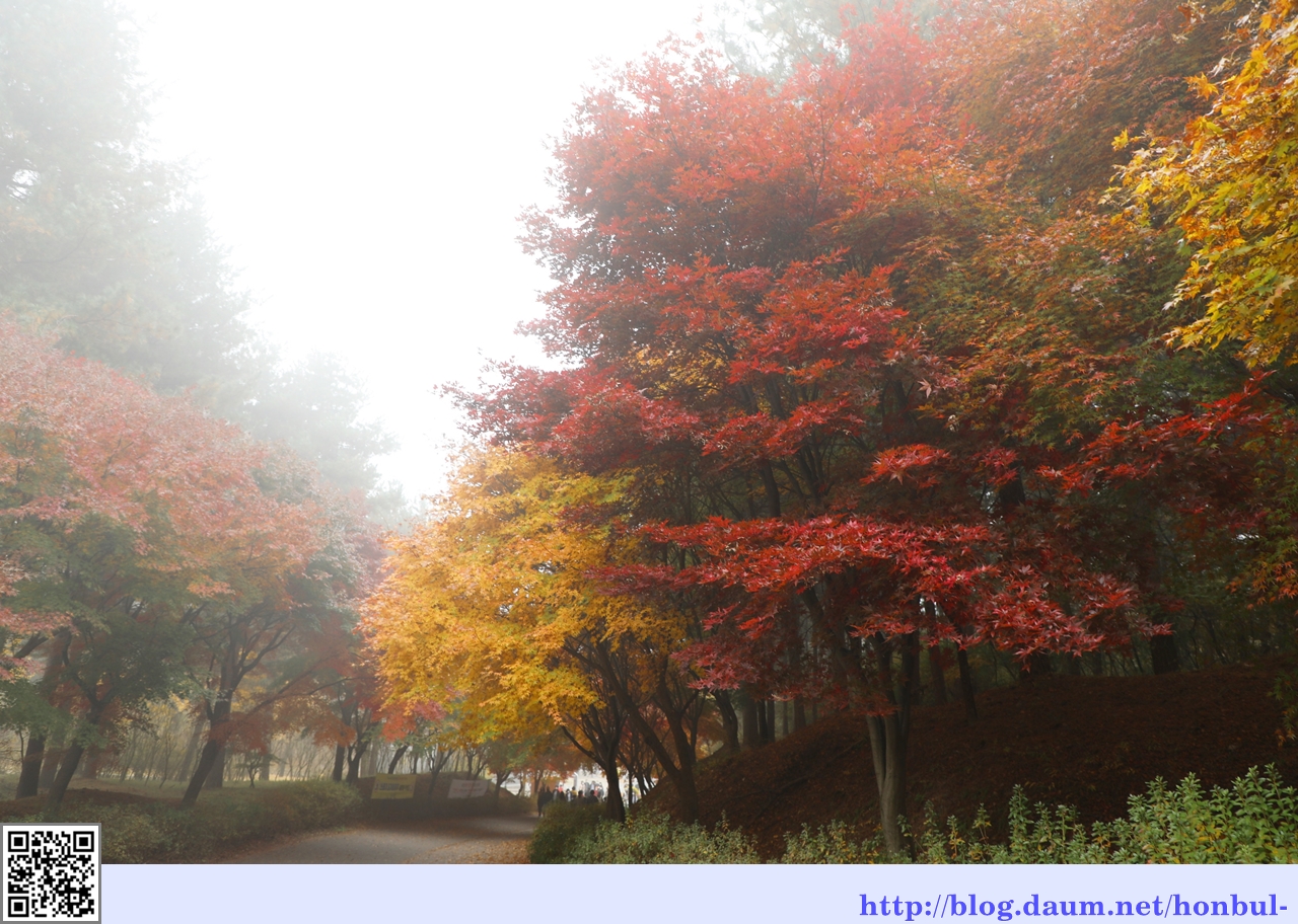 독립기념관의 제법 멋진 단풍을 기대했으나 안개로 햇빛이 들지 않아 아쉬운 발걸음이 됐다.