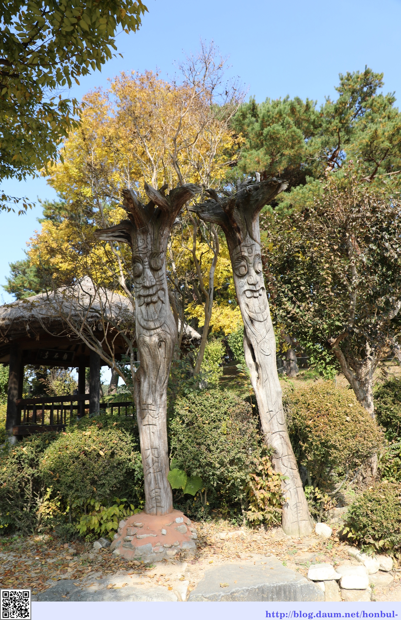 나무뿌리를 처리하지 않고 세운 장승이 인상적이다.