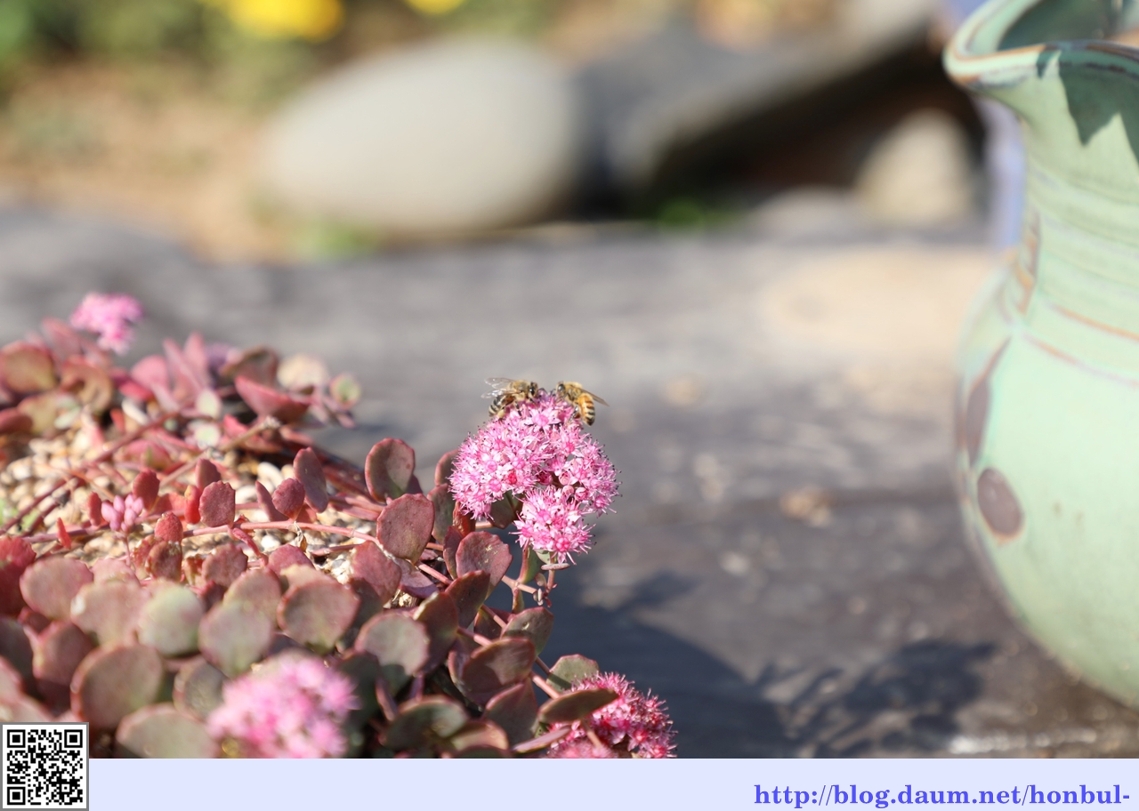 이 작은 꽃에서도 꿀을 따겠다고 달려든 꿀벌