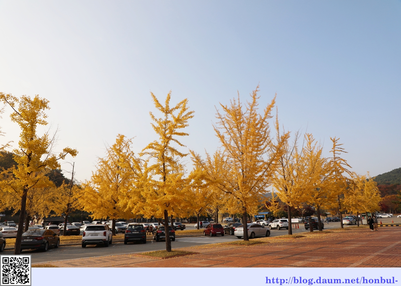 주차장의 노랗게 물든 은행나무는 단풍과 또 다른 매력을 보인다.