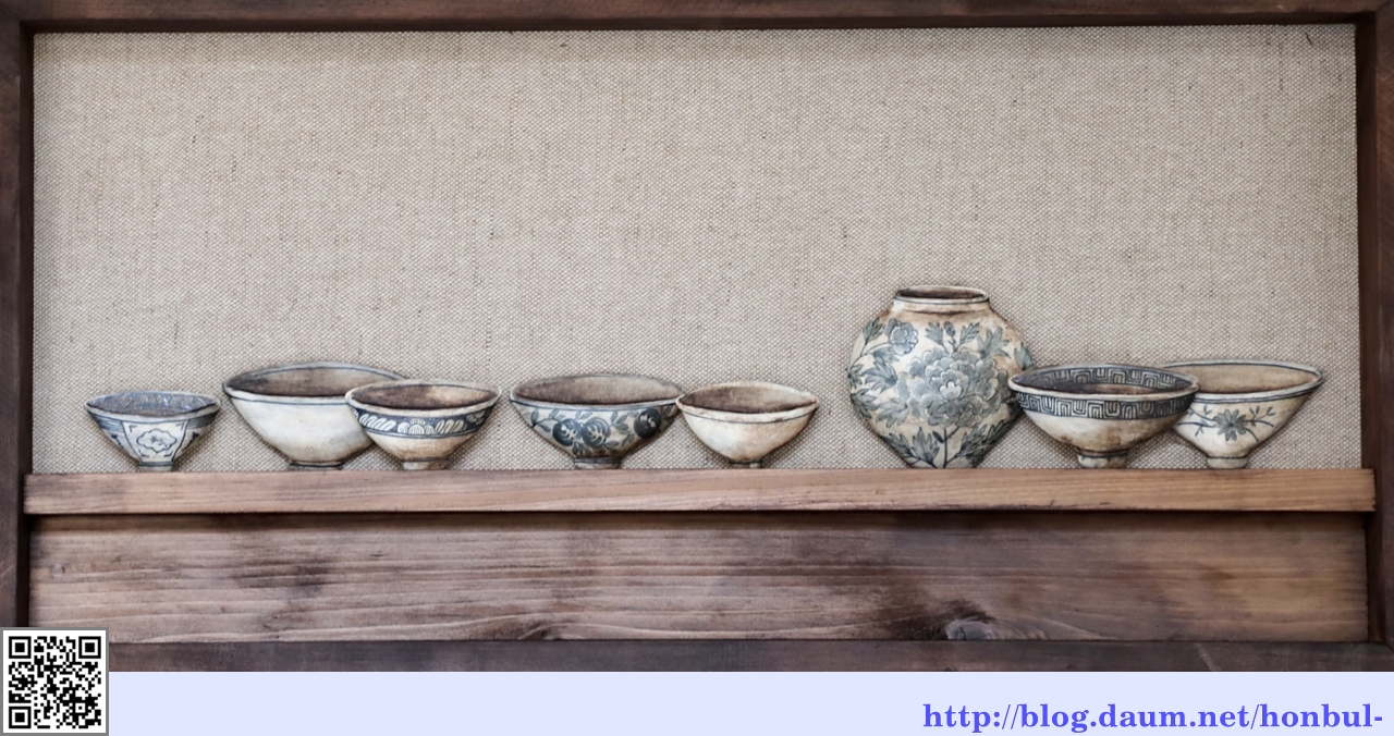 그림을 입체적으로 잘 그려 오래된 막사발을 보는 느낌이다.