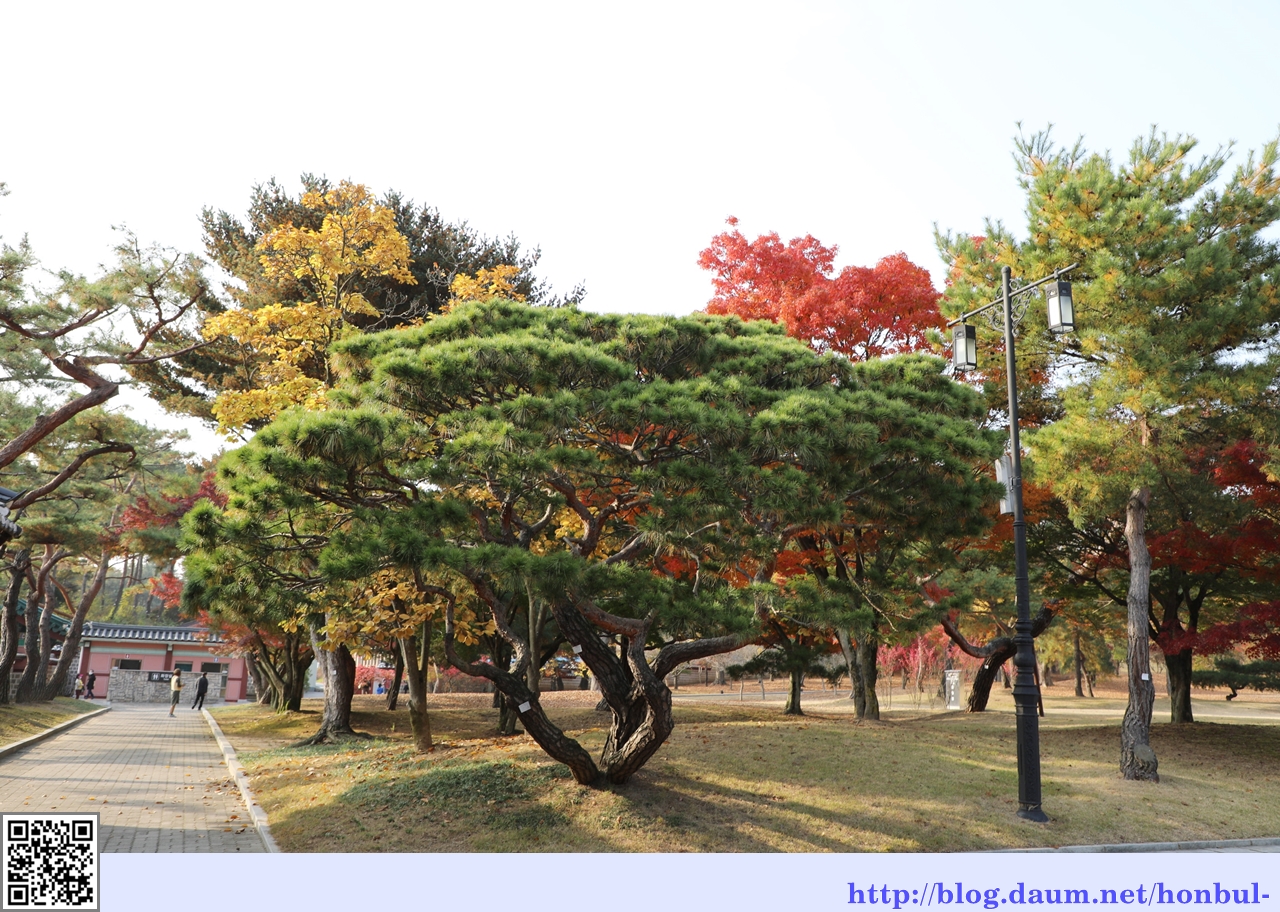 아산 현충사에서 올 들어 가장 멋진 단풍을 즐긴다.