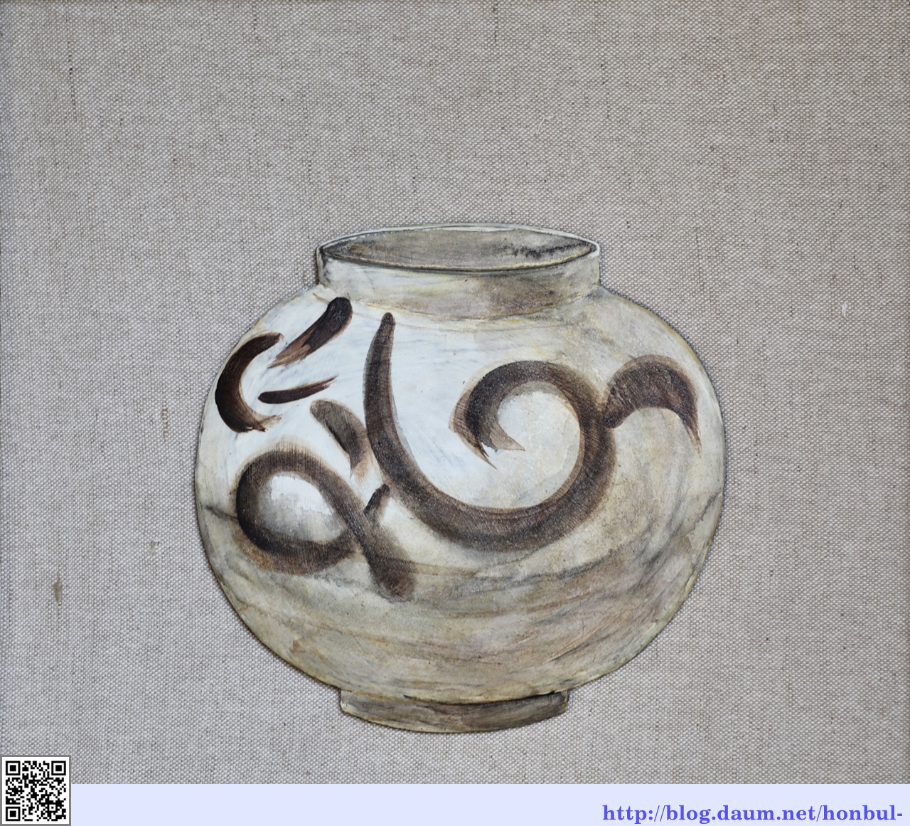 그림을 입체적으로 잘 그려 오래된 막사발을 보는 느낌이다.