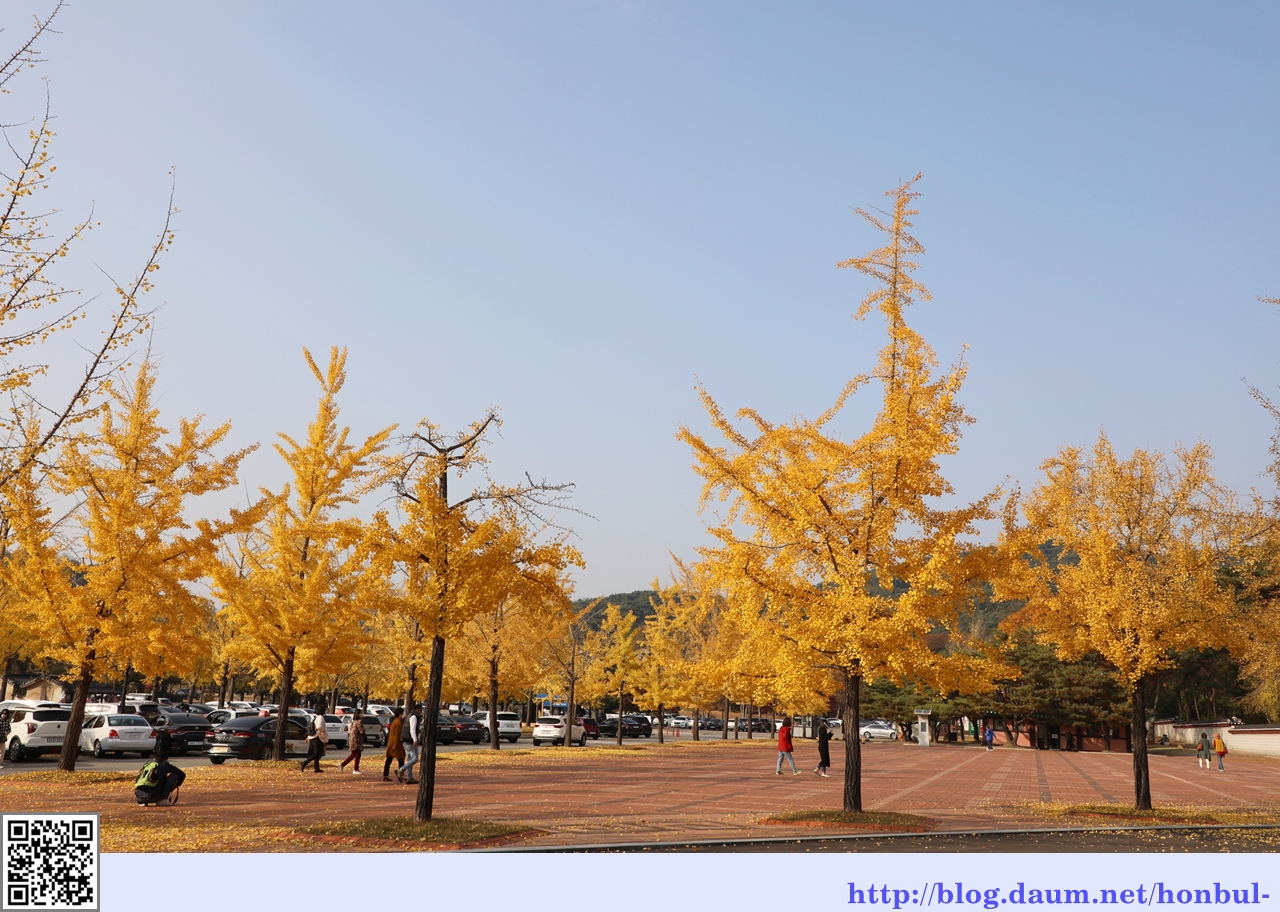 주차장의 노랗게 물든 은행나무는 단풍과 또 다른 매력을 보인다.
