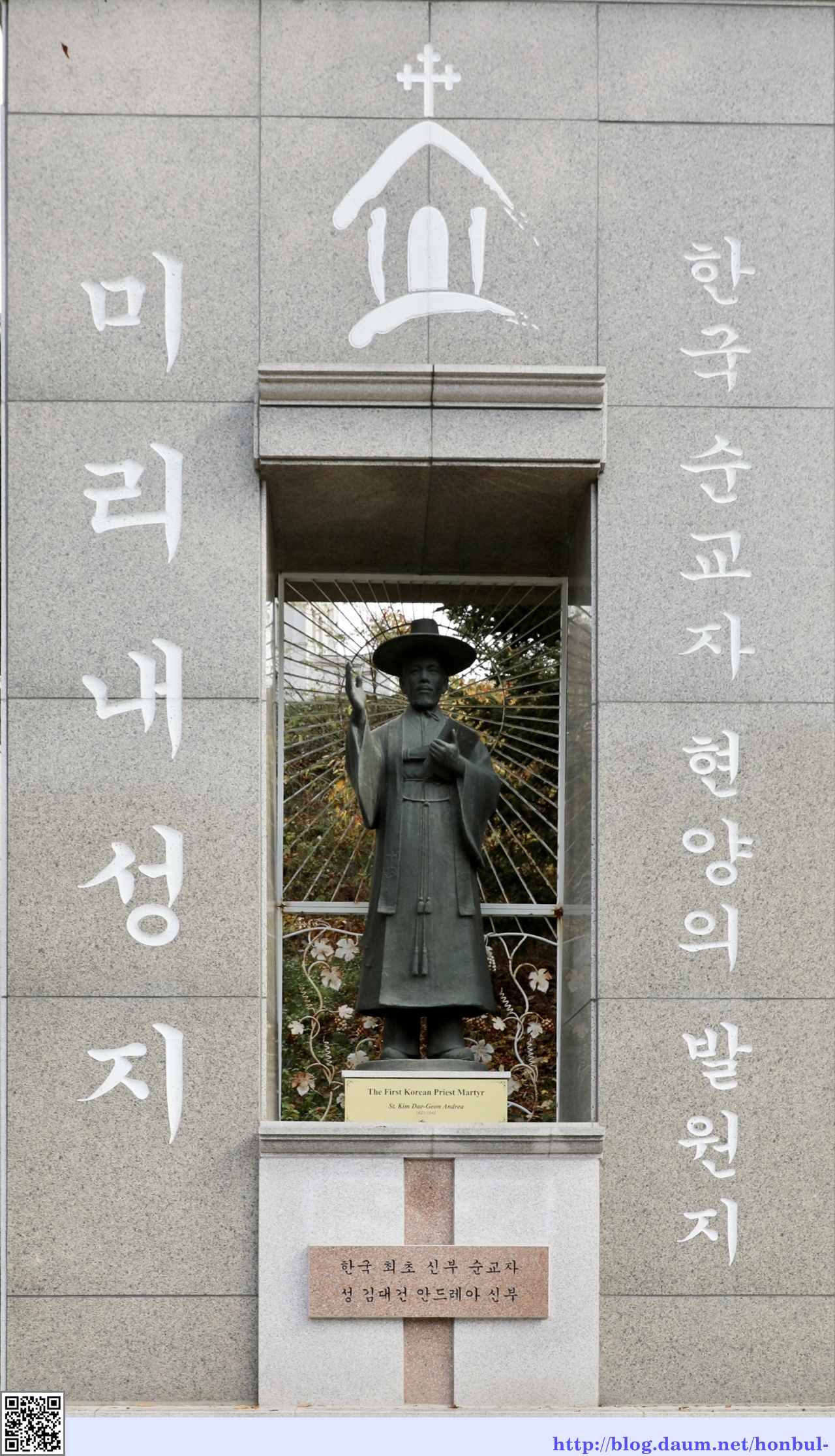 김대건 신부 기념 성당과 묘역을 지나 십자가의 길을 따라 내려간다.