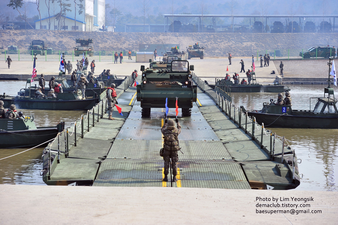 한미 연합 도하훈련 때 만든 부교는 탱크가 지나갈 정도로 장비가 우수하다.