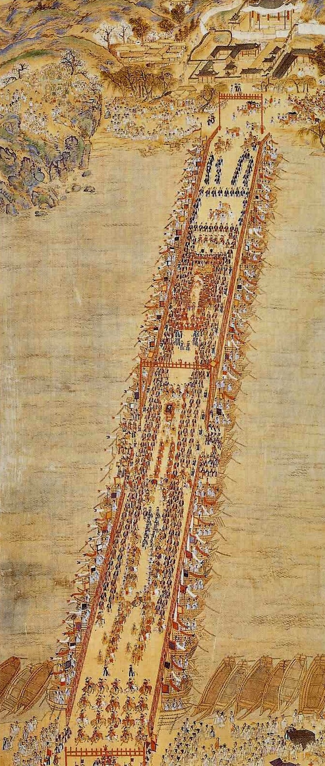 한강에 다리가 없던 시절 많은 인원이 한강을 건널 때 배보다 배다리로 건너는 게 훨씬 안정적이고 효율적이다.