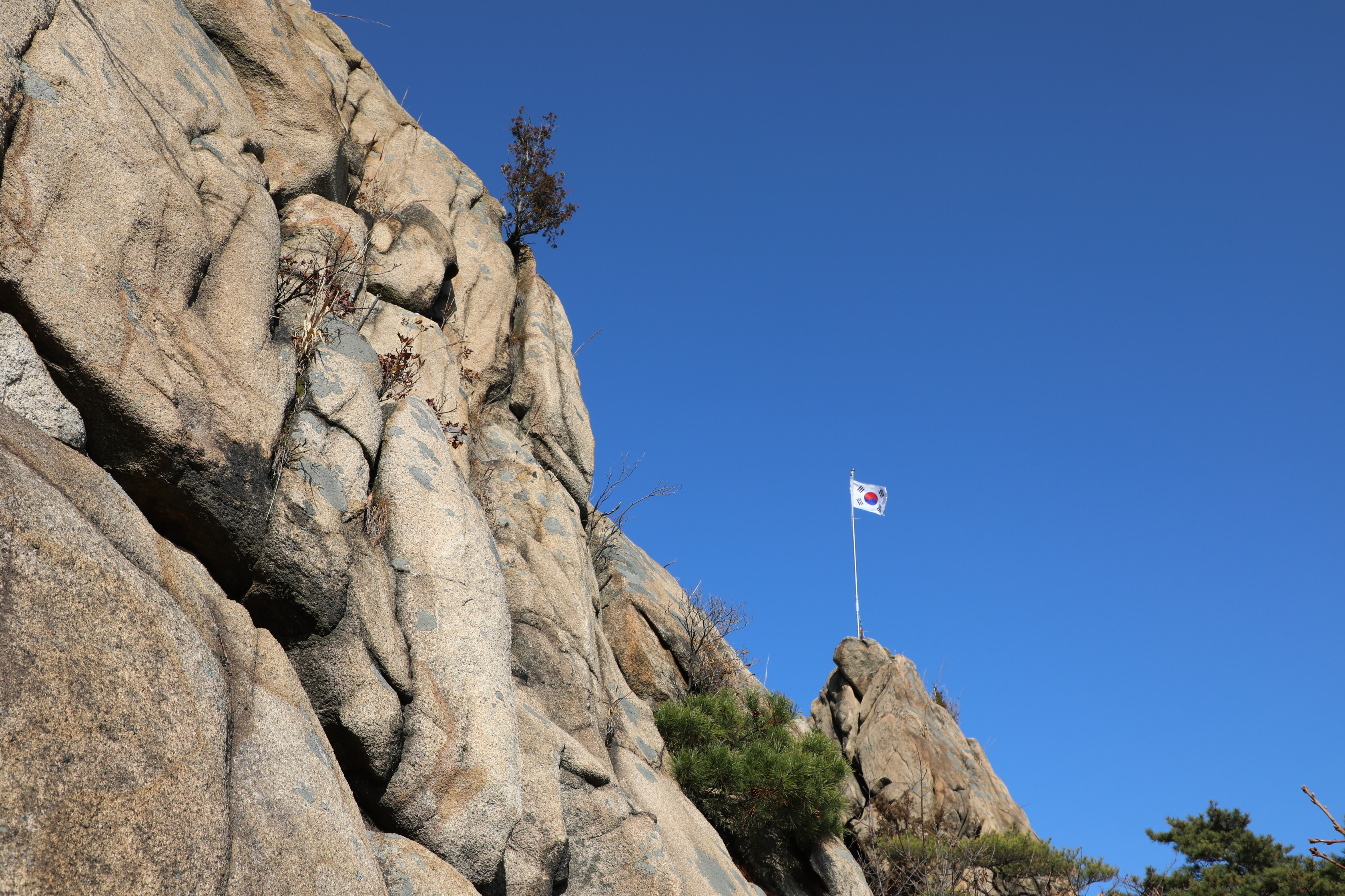 산에서 내려올 때 만나는 칼바위 국기봉은 그래도 오르기 쉬운 편인 데,