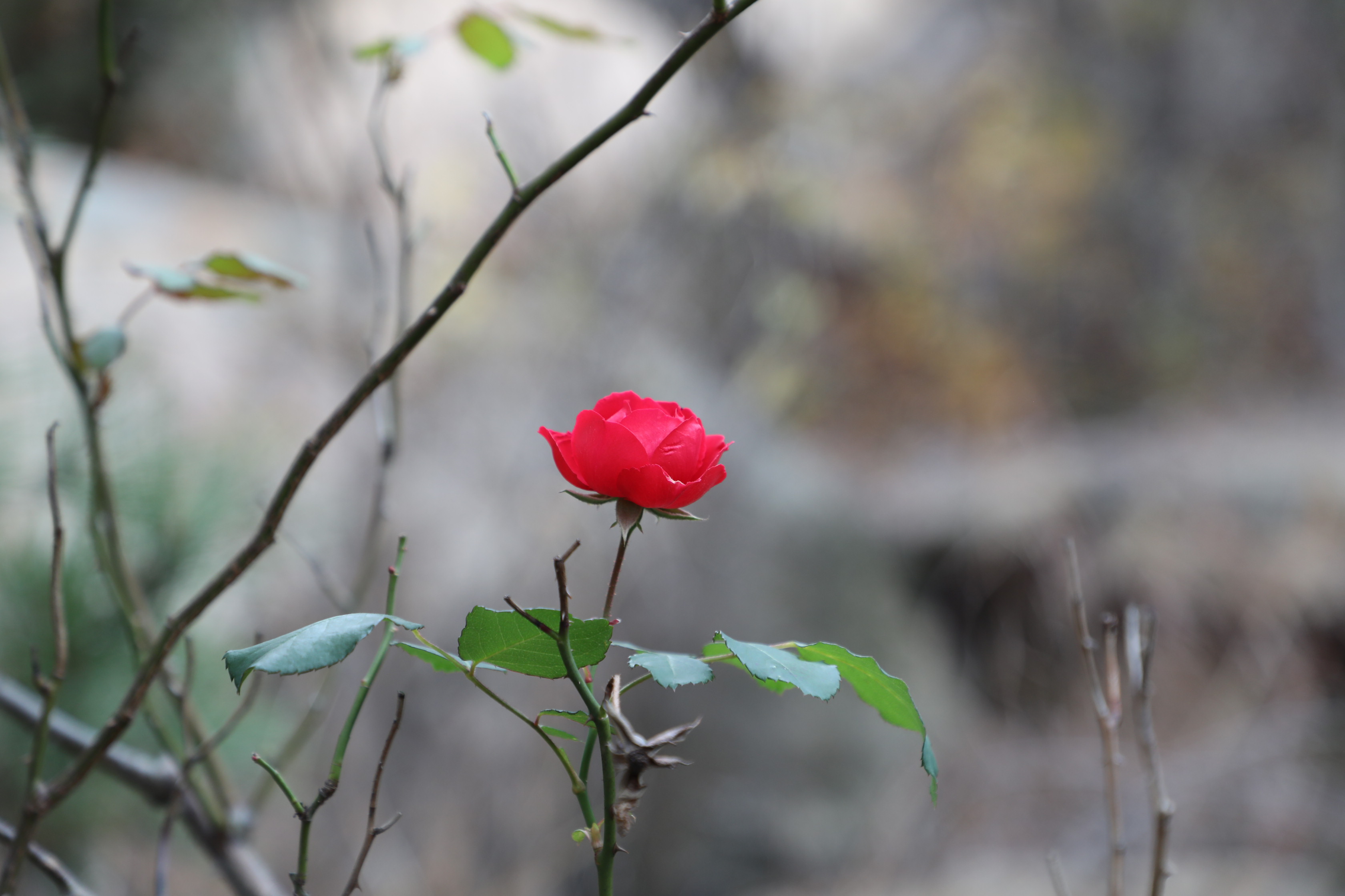 길 없는 곳에 장미 한 그루가 있는 걸 보면 누군가 일부러 심었겠다.