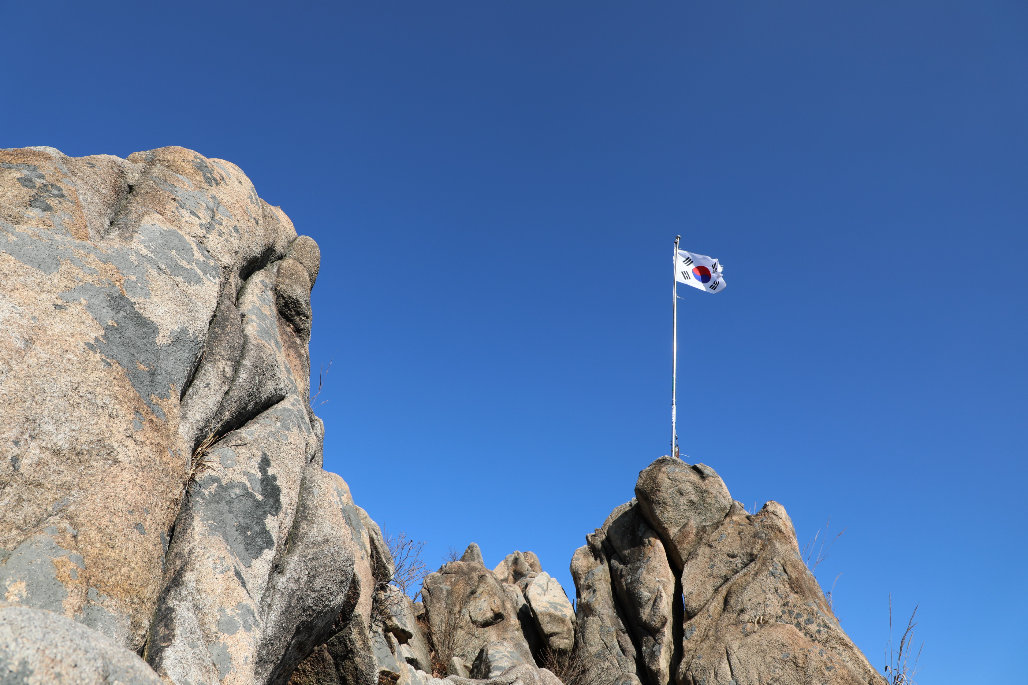 산을 오르다 보니 어느새 칼바위능선의 칼바위 국기봉이다.