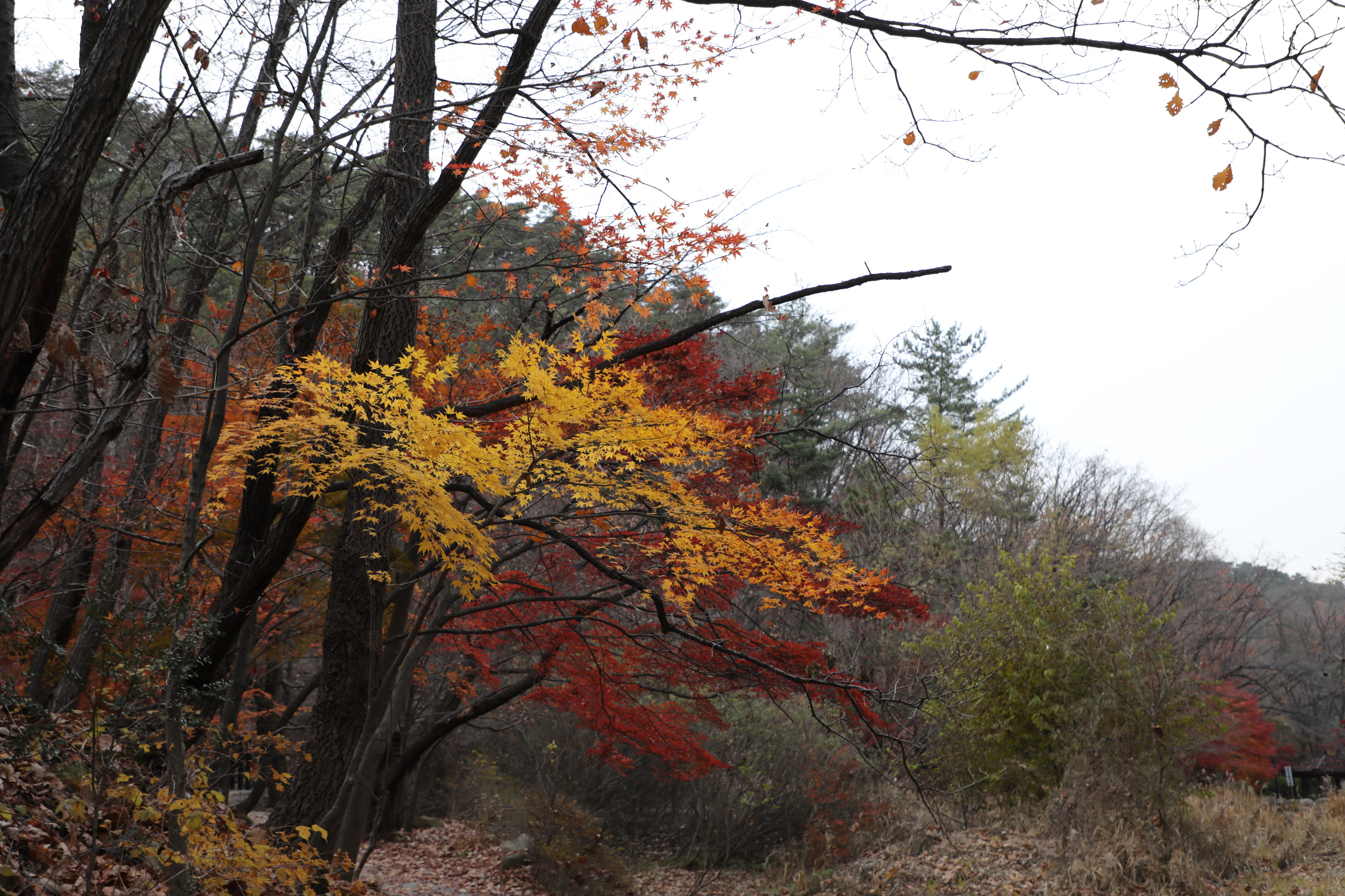 입동이 지난 지 열흘이 넘어 겨울인 줄 알았더니 아직도 단풍이 남아있다.
