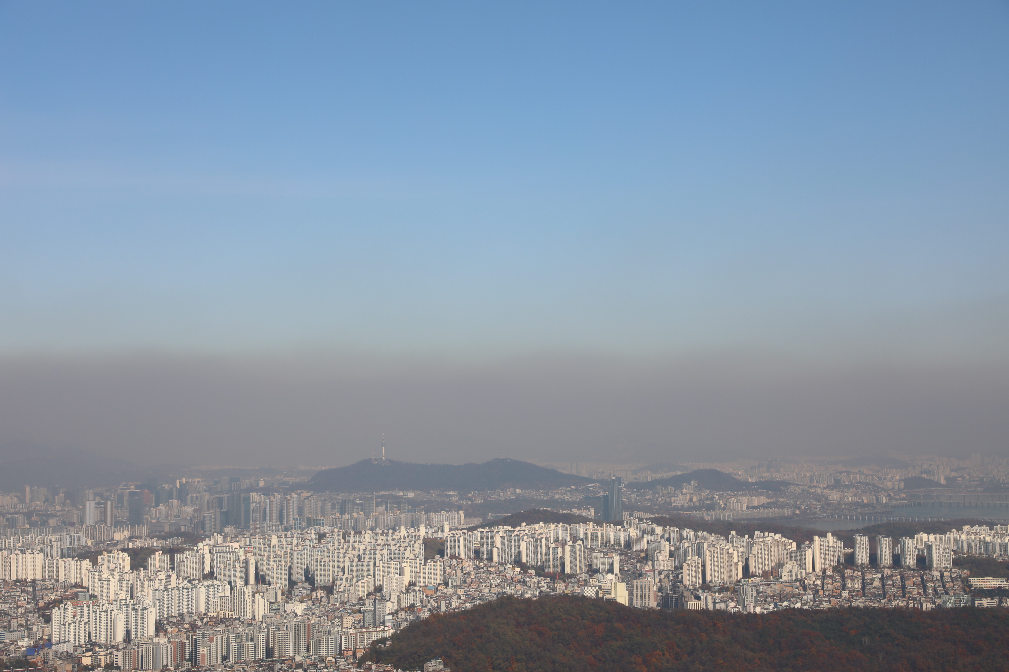 멀리 남산타워 뒤로 미세먼지와 질 나쁜 대기가 사막의 모래폭풍처럼 검게 보인다.
