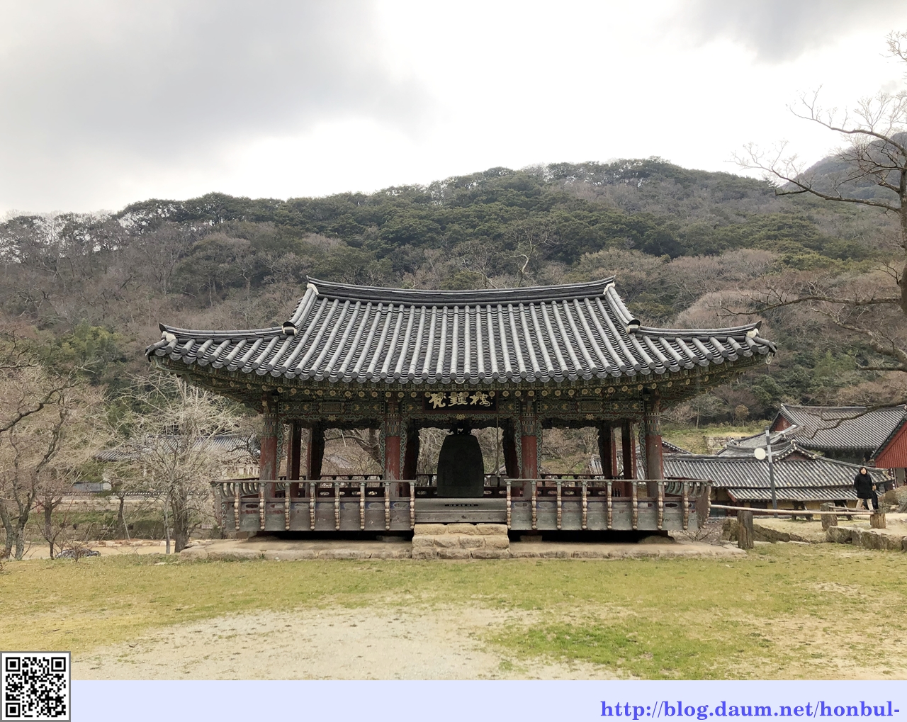 심진교를 지나 누 아래의 어칸 통로를 통해 중정으로 출입하며, 대웅전 맞은편에 자리한다.