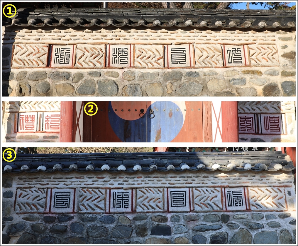 ② 박문약례는 문 양쪽에 두 글자씩 떨어져 있다.