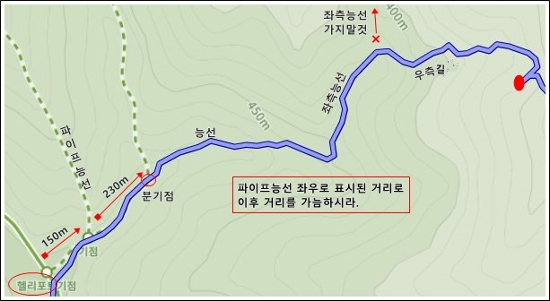 헬리포트는 사당 능선 하마바위에서 900여 m 상단이다.