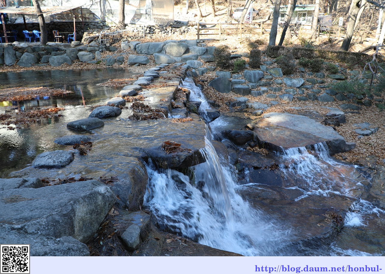 계곡에 둑을 만들고 돌다리를 만든 게 제법 운치 있다.