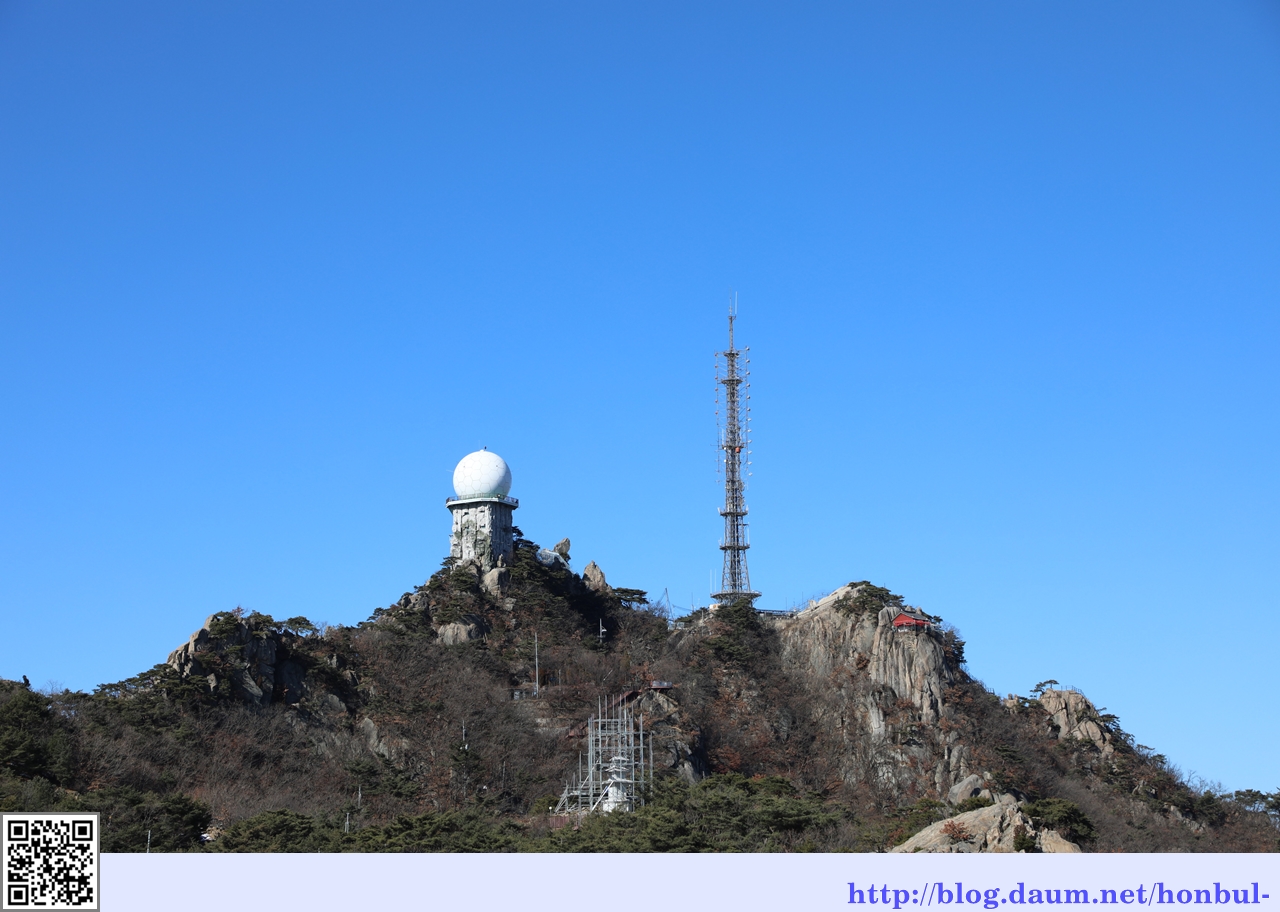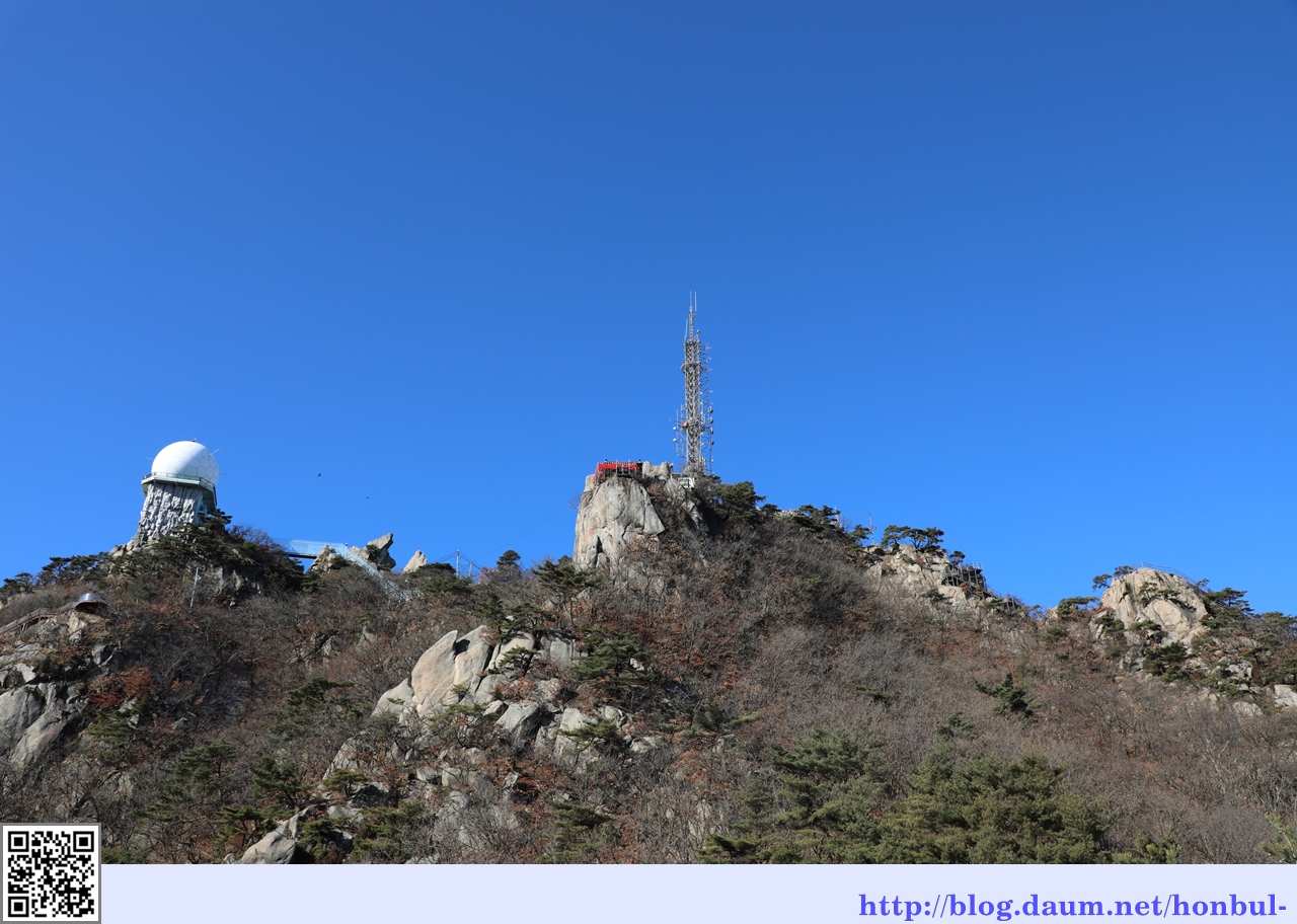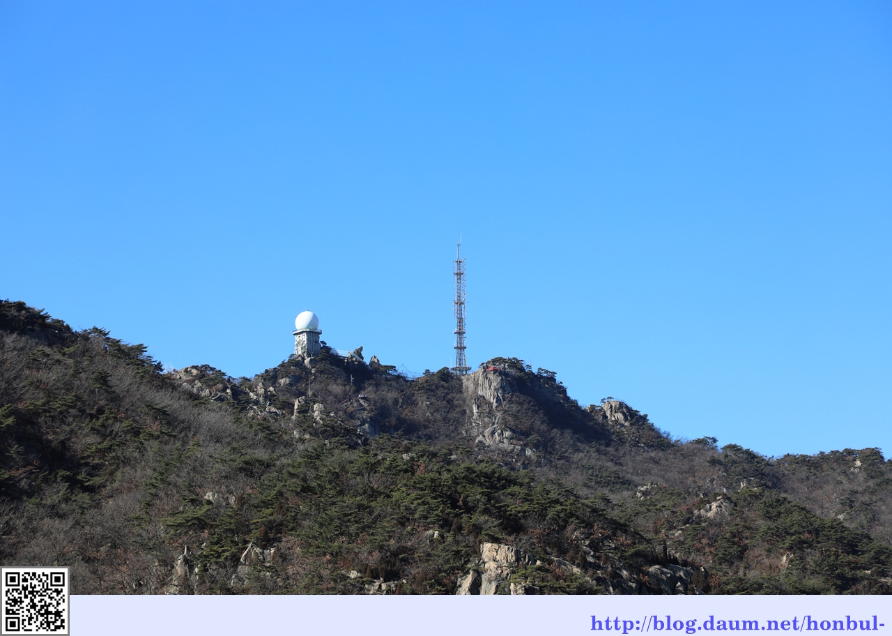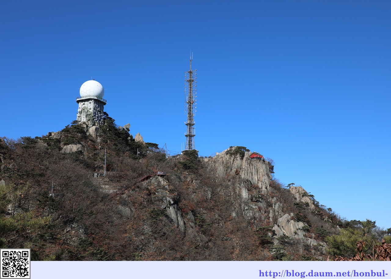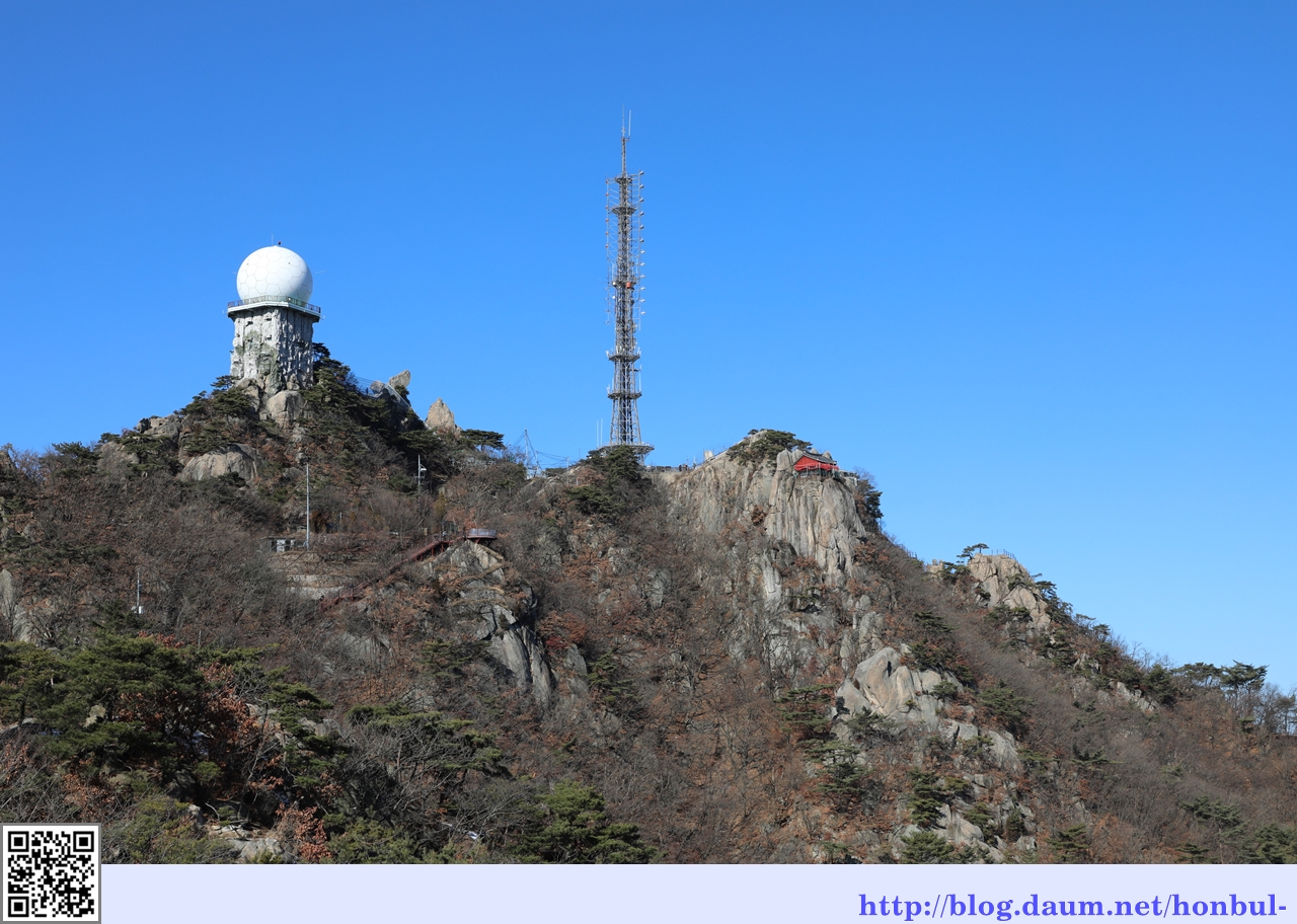 여기선 통신탑이 있는 곳이 제일 높게 보이지만, 사실 관악산 정상은 기상관측소 우측의 바위라고 한다.