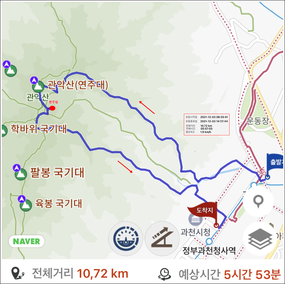 2021.12.03 (금) 08:25~14:22 (10.7km 이동, 5시간 57분 산행, 평속 1.9km/h) 맑음