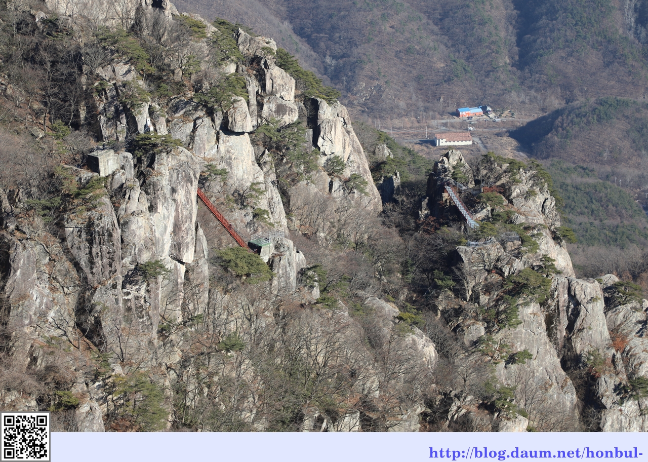 서각봉에서 보니 삼선계단과 금강구름다리가 잘 보인다.