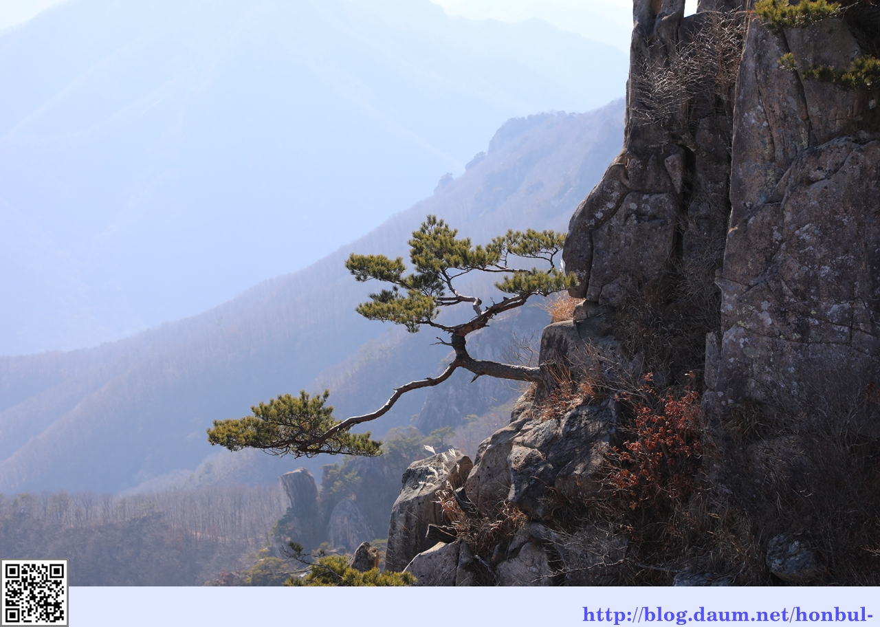 바위 산에는 우리 민족의 끈기를 보여주는 소나무가 억척스럽게 자란다.
